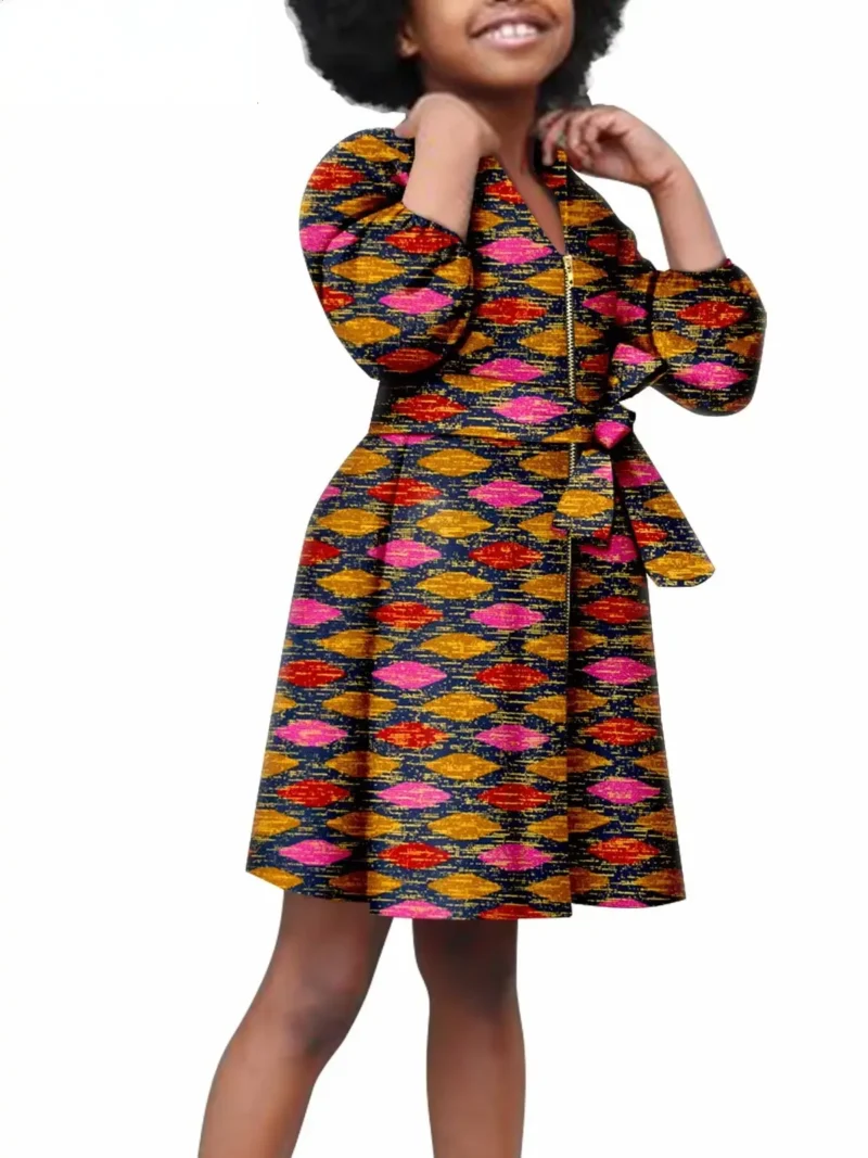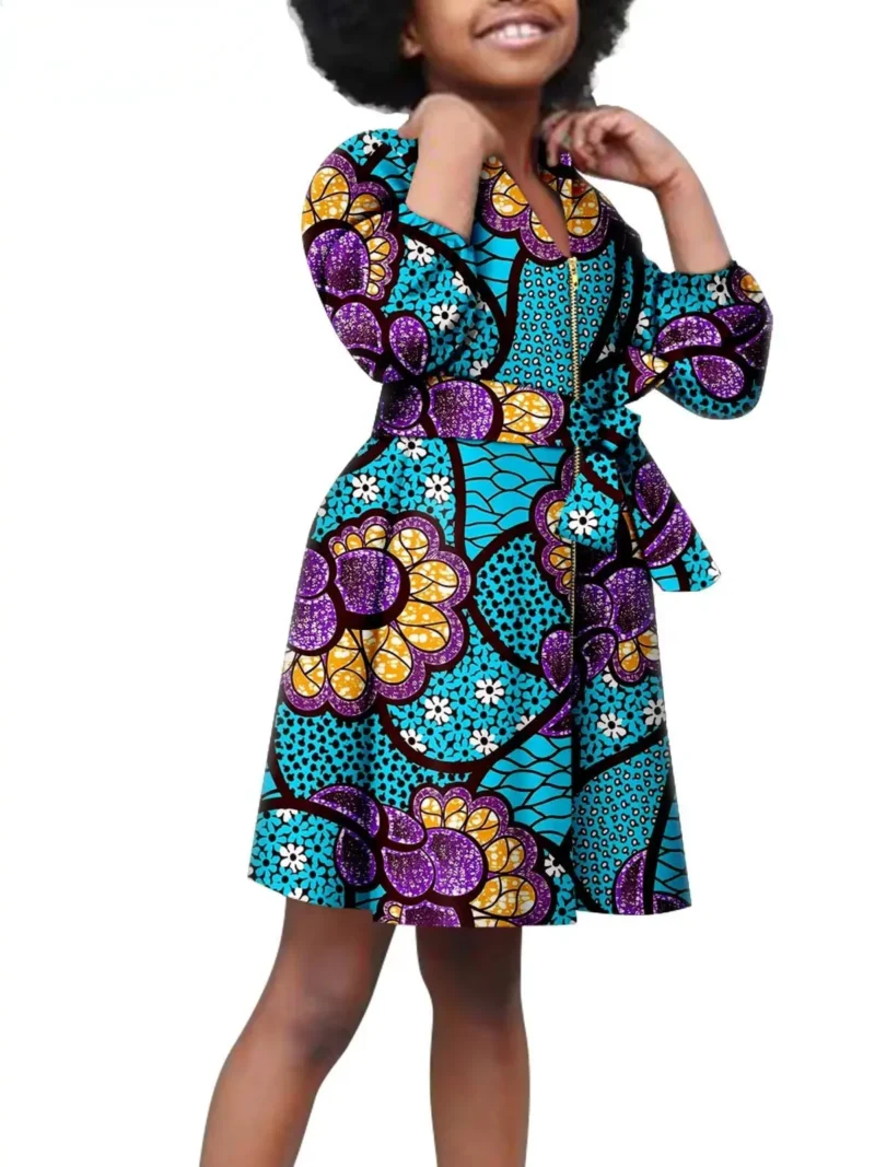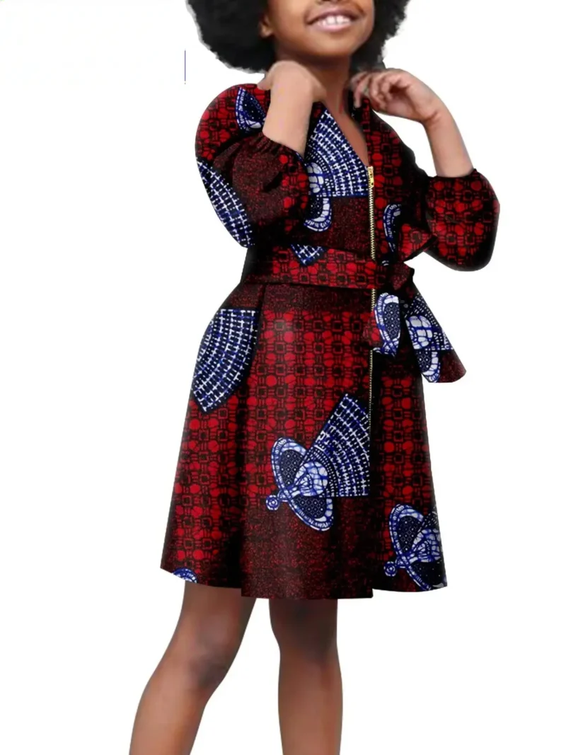 Be the first to review “African Clothes for Girls Print Dresses Long Coat with Belt Acok46”