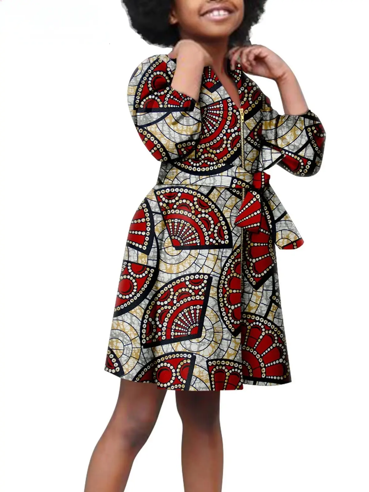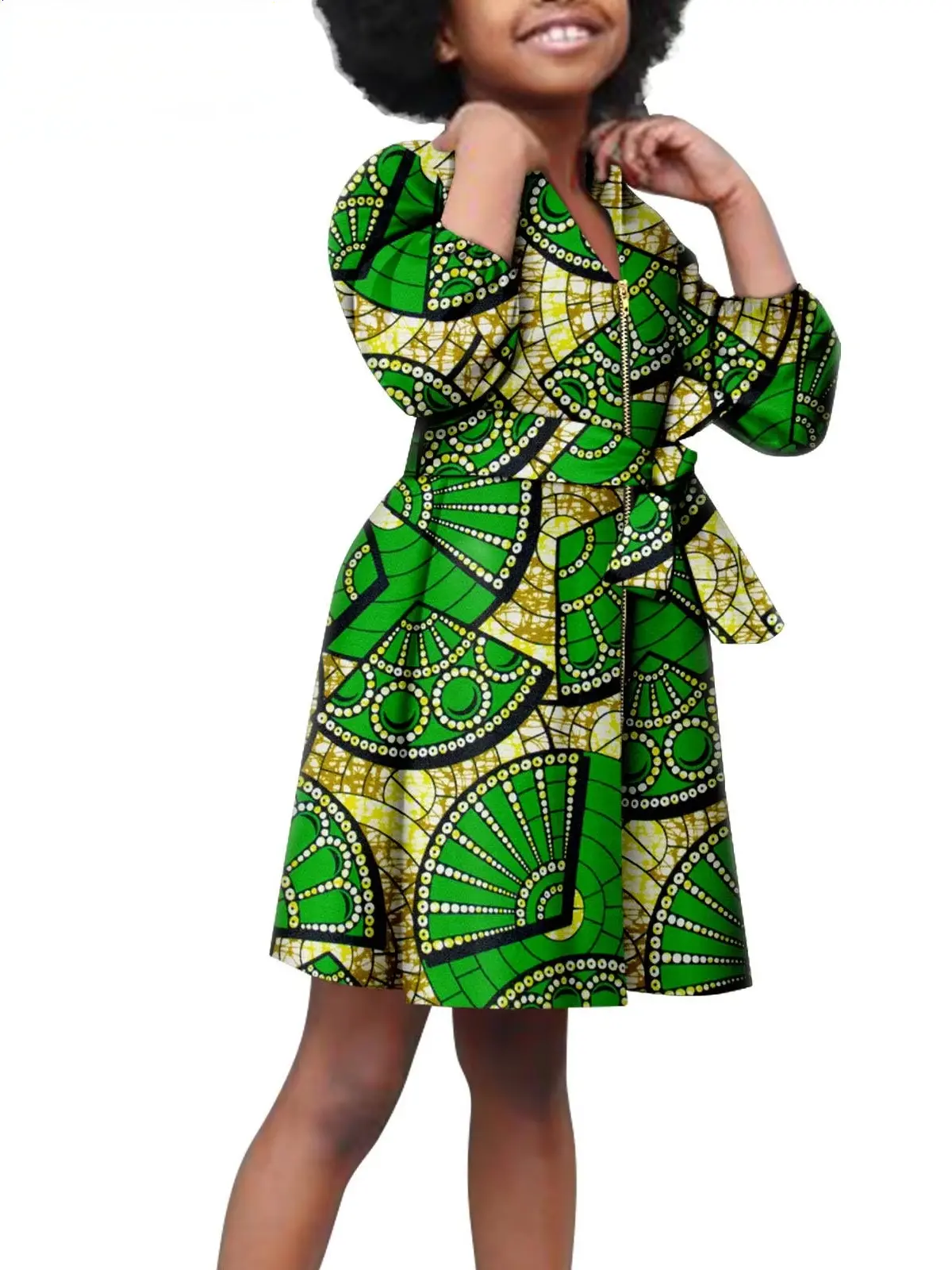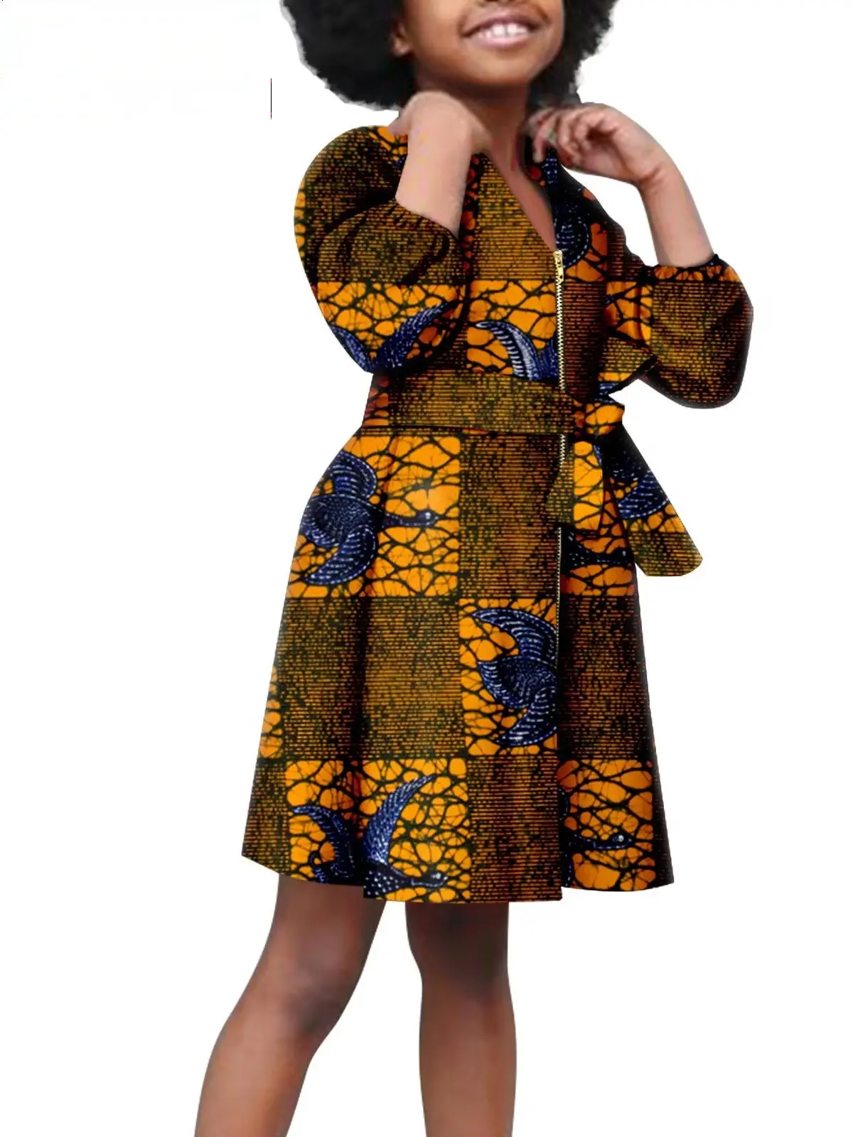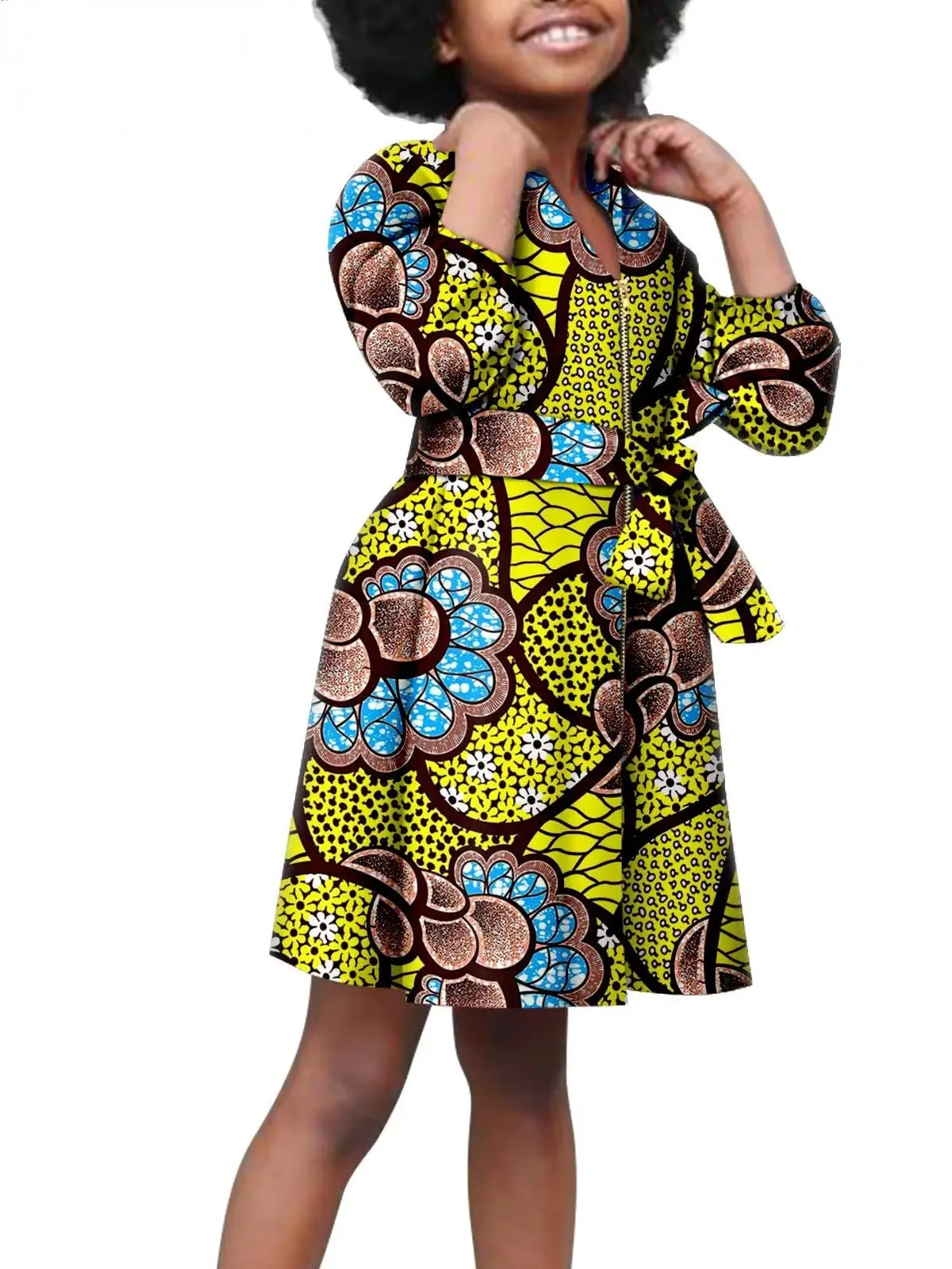 African Clothes for Girls Print Dresses Long Coat with Belt Acok46African Clothes for Girls Print Dresses Long Coat with Belt Acok46