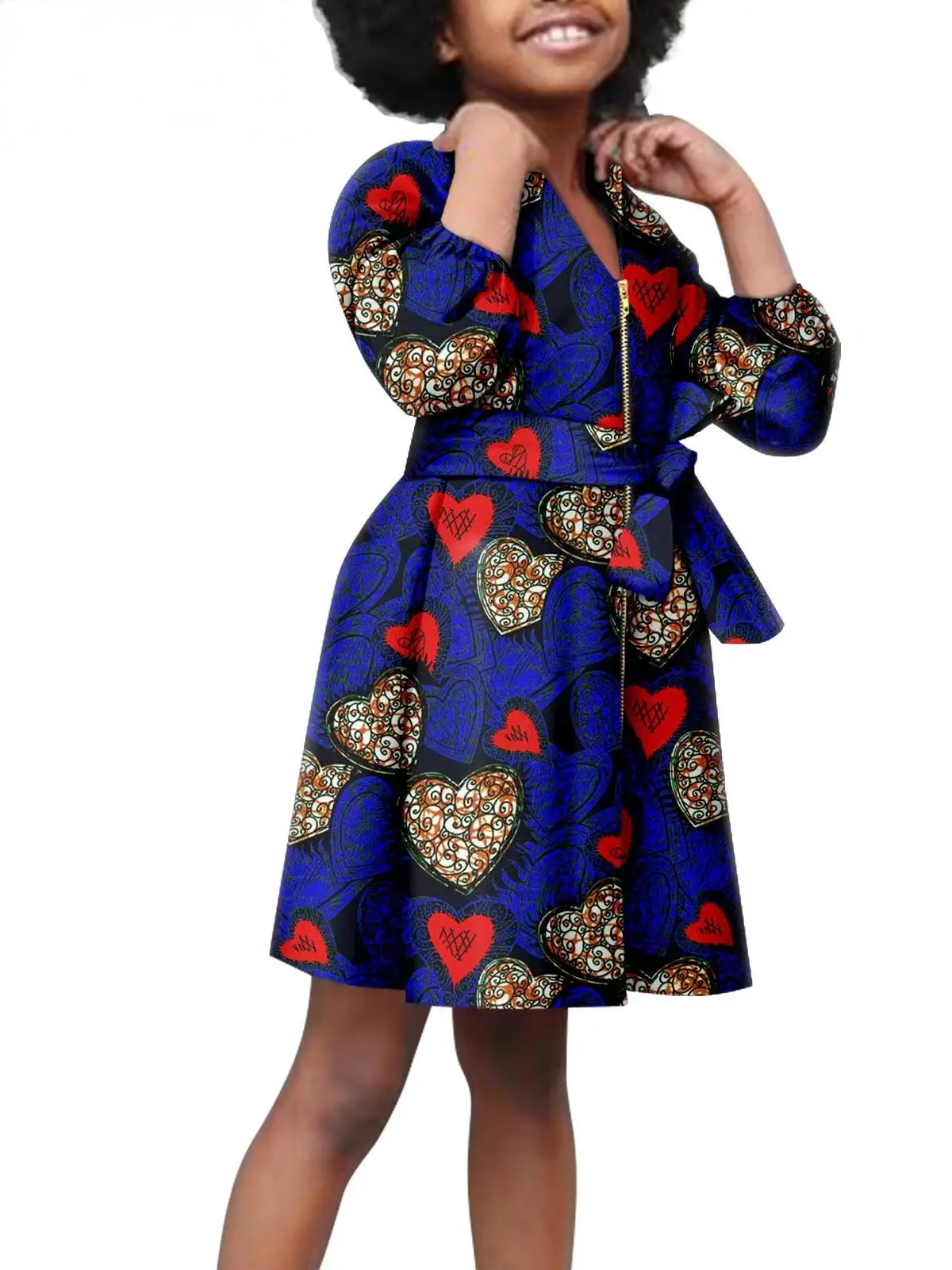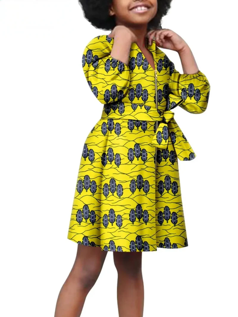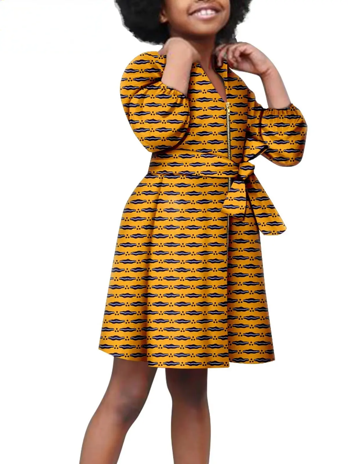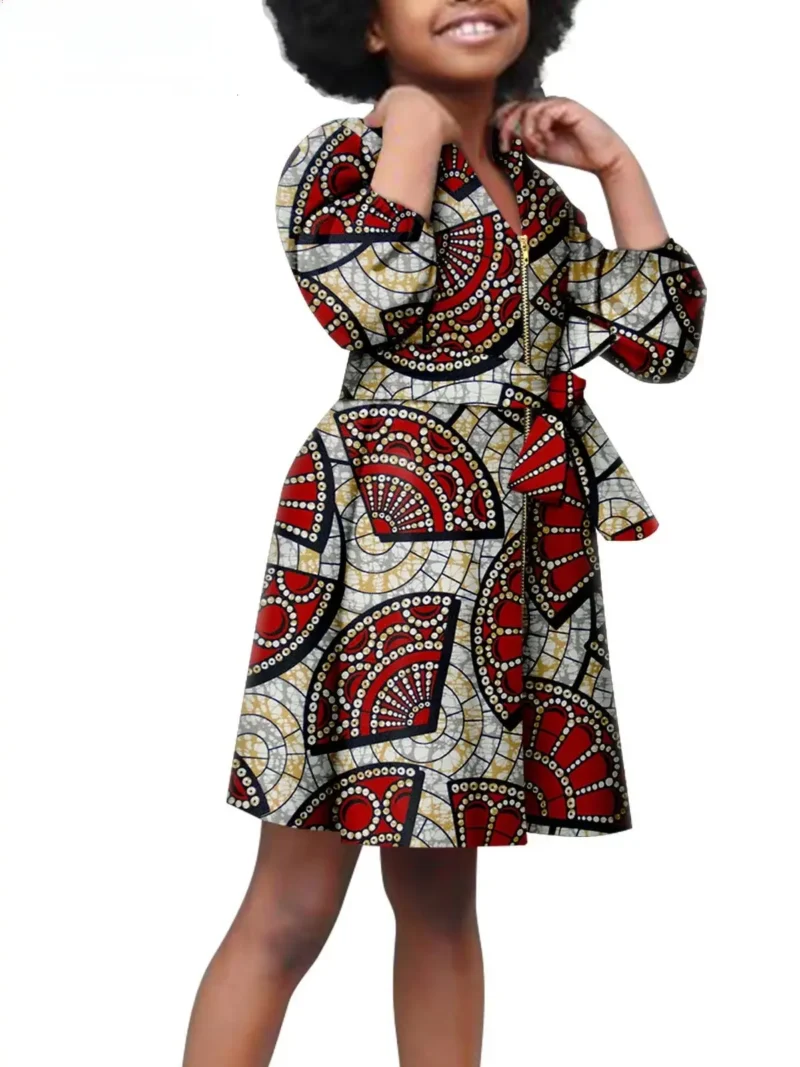 African Clothes for Girls Print Dresses Long Coat with Belt Acok46African Clothes for Girls Print Dresses Long Coat with Belt Acok46
