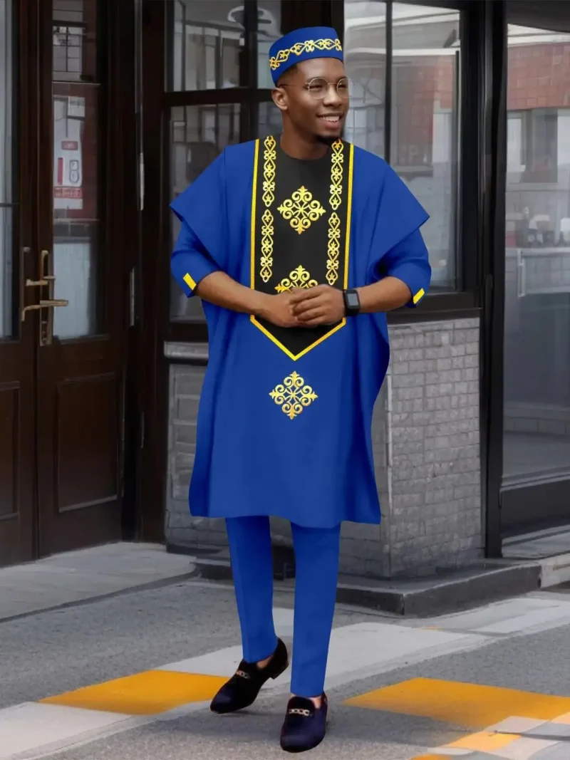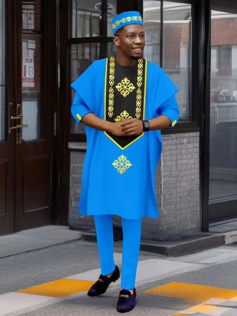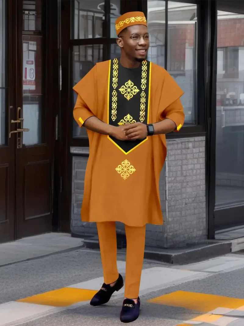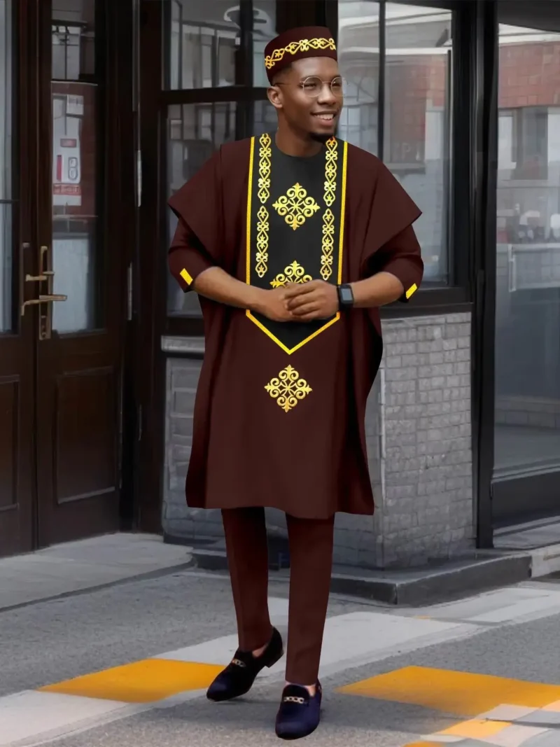 African Clothing For Men Agbada Robe Short Sleeve Shirts Pants Hats Sets Acmt12African Clothing For Men Agbada Robe Short Sleeve Shirts Pants Hats Sets Acmt12