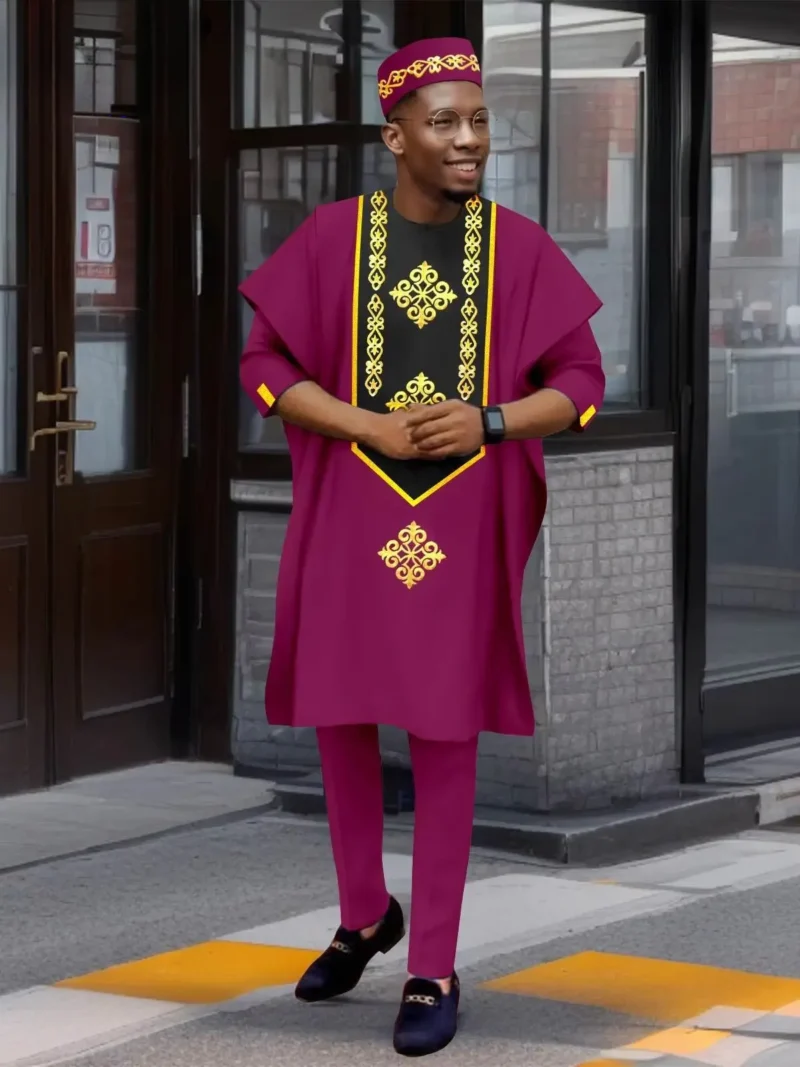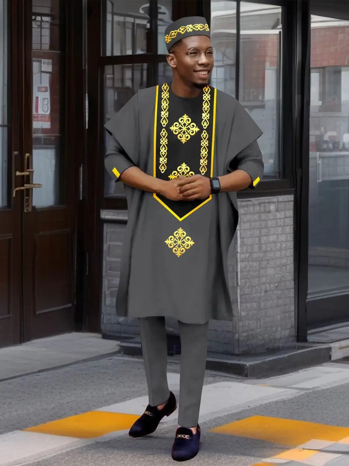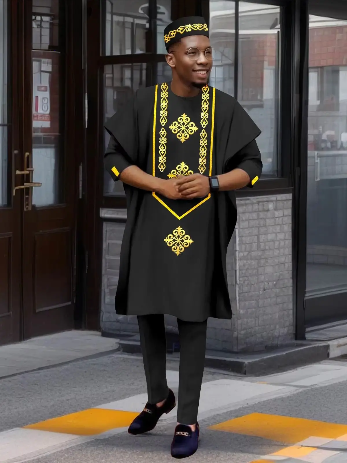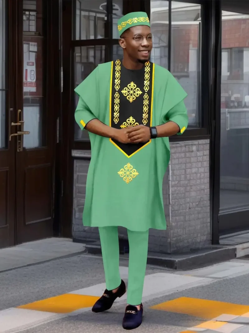 African Clothing For Men Agbada Robe Short Sleeve Shirts Pants Hats Sets Acmt12African Clothing For Men Agbada Robe Short Sleeve Shirts Pants Hats Sets Acmt12