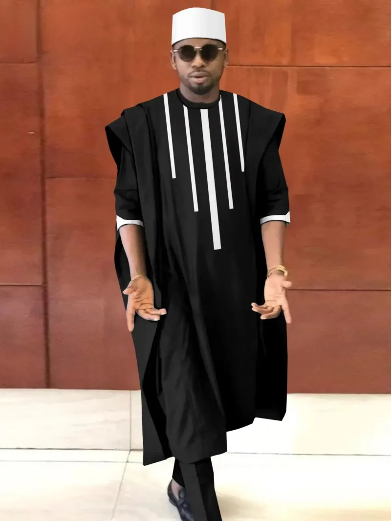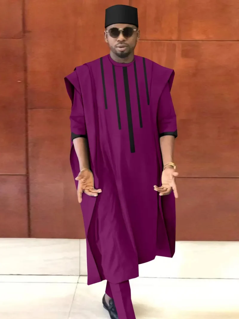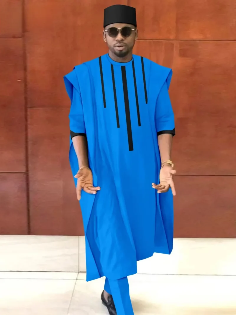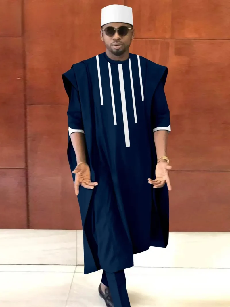 Be the first to review “African Clothing For Men Agbada Shirts Pants and Tribal Hat Set Acmt53”