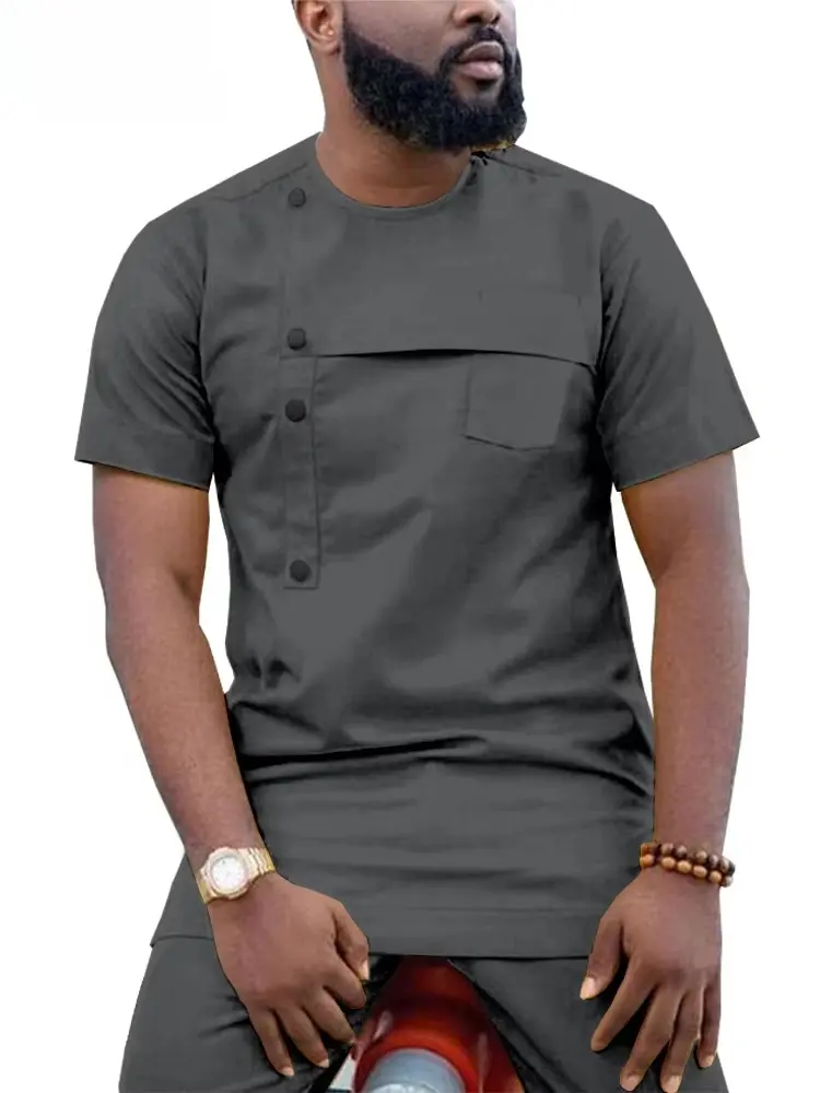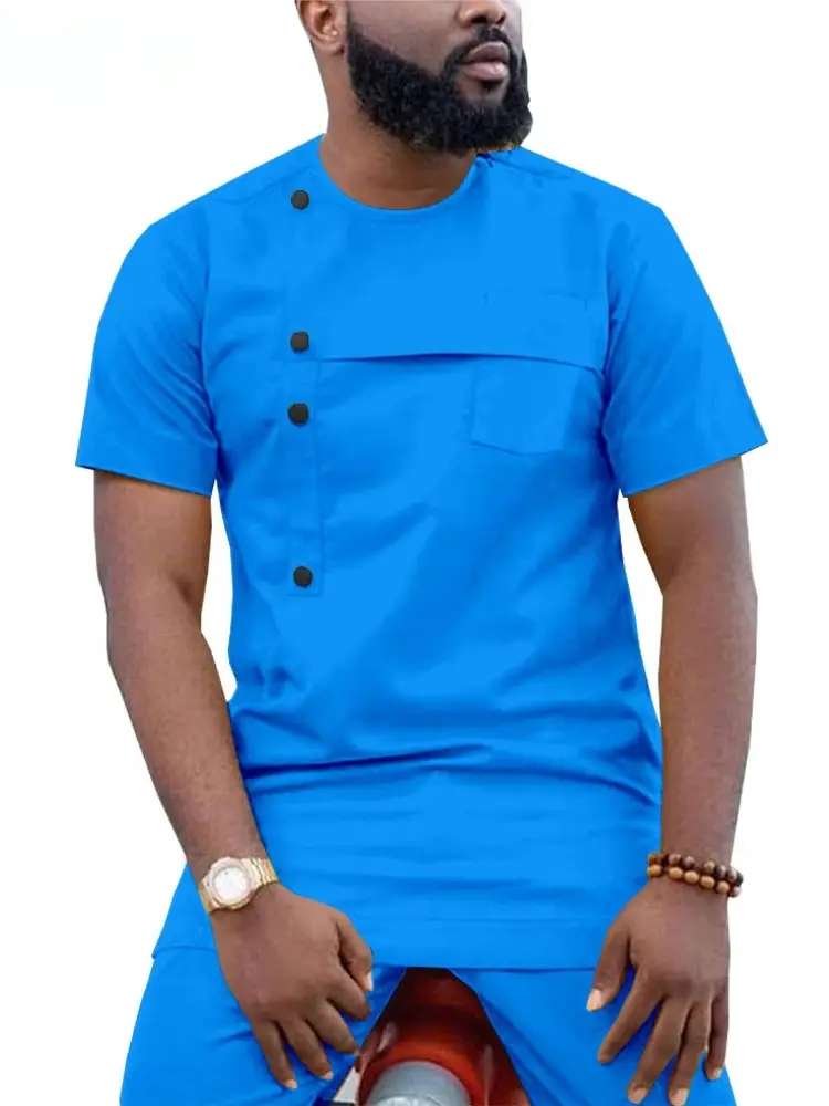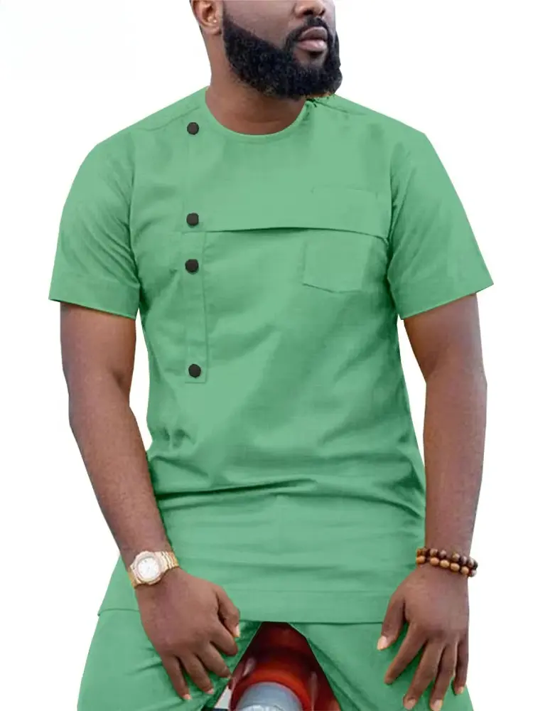 African Clothing For Men Crop Top Ankara Pants Set Dashiki Shirt Acmt20