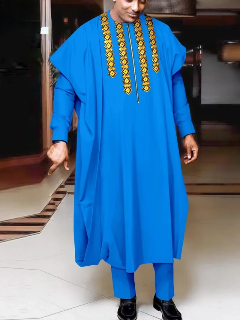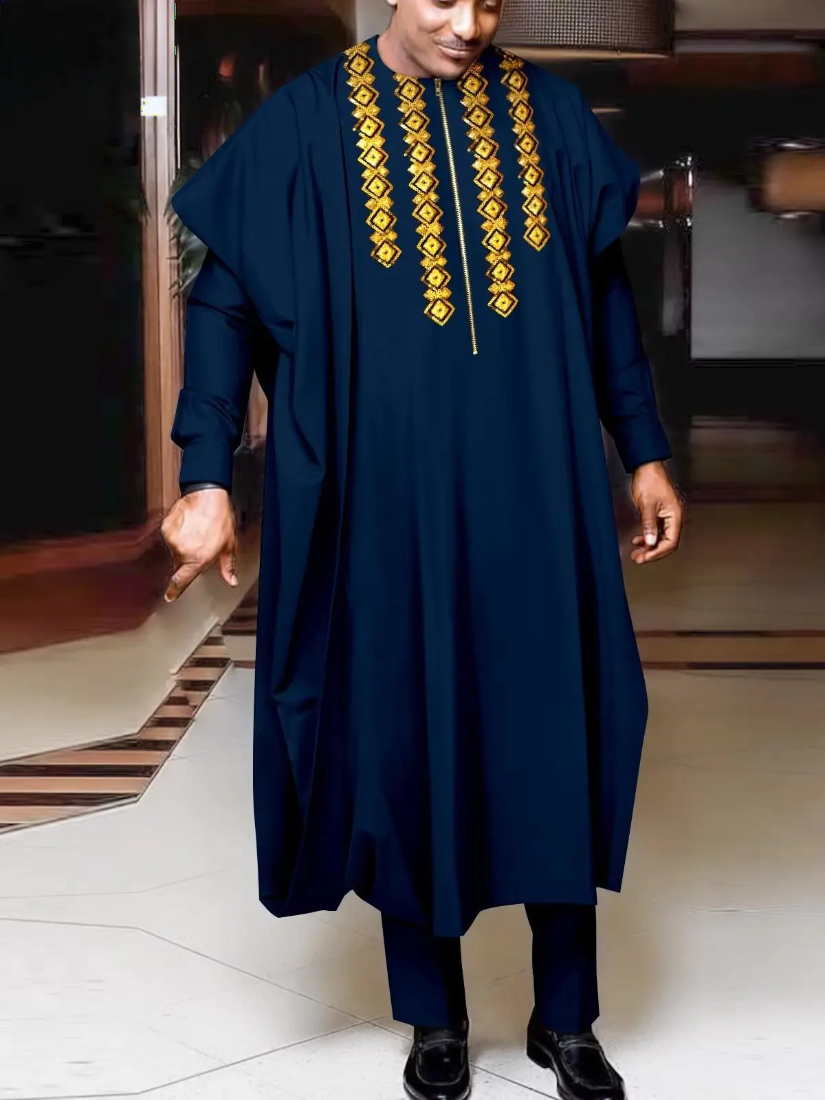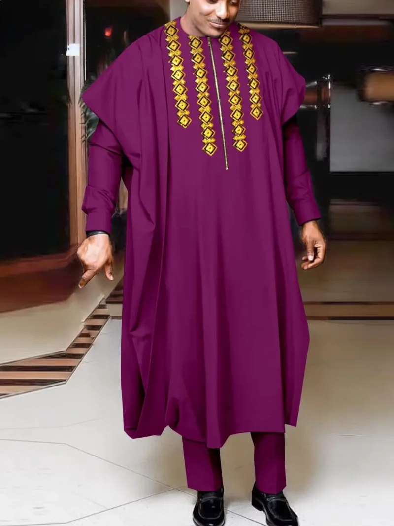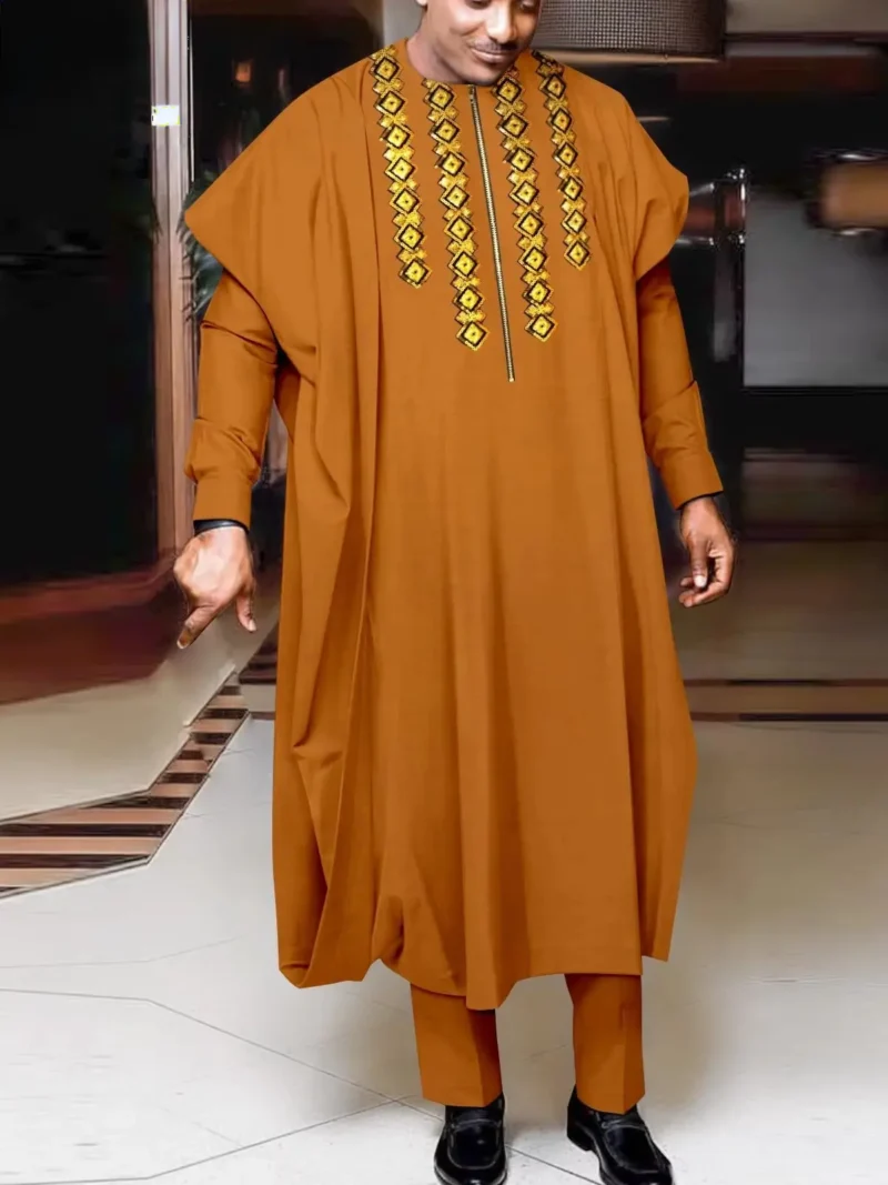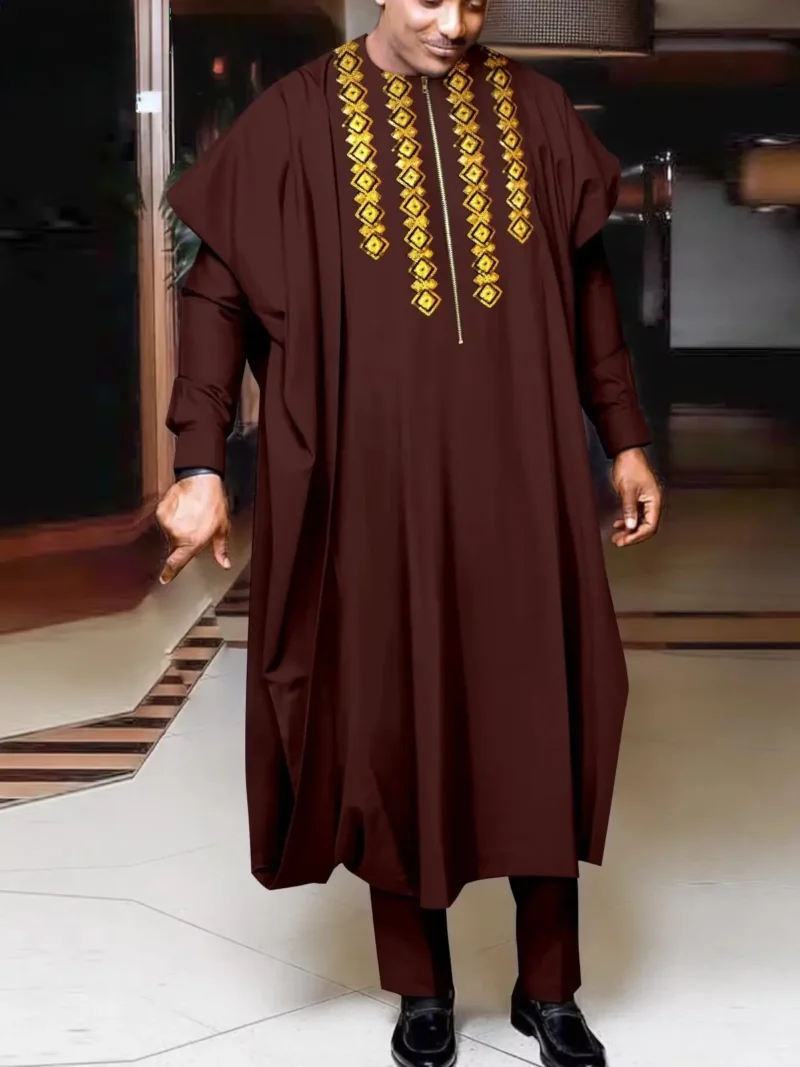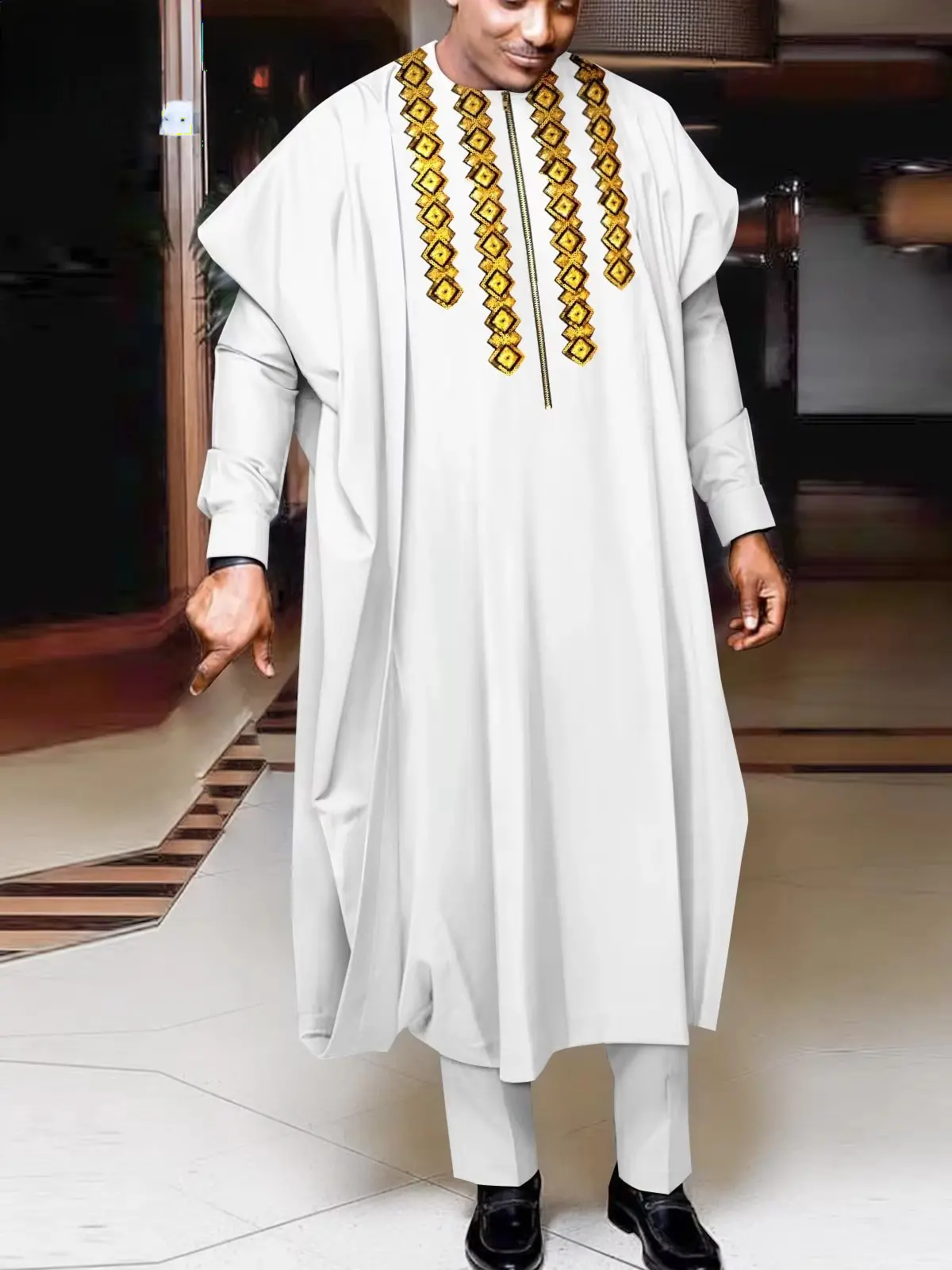 African Clothing For Men Embroidery Agbada Robe Shirts and Pants Set Acmt65African Clothing For Men Embroidery Agbada Robe Shirts and Pants Set Acmt65