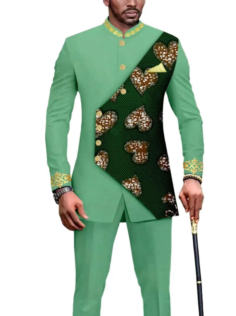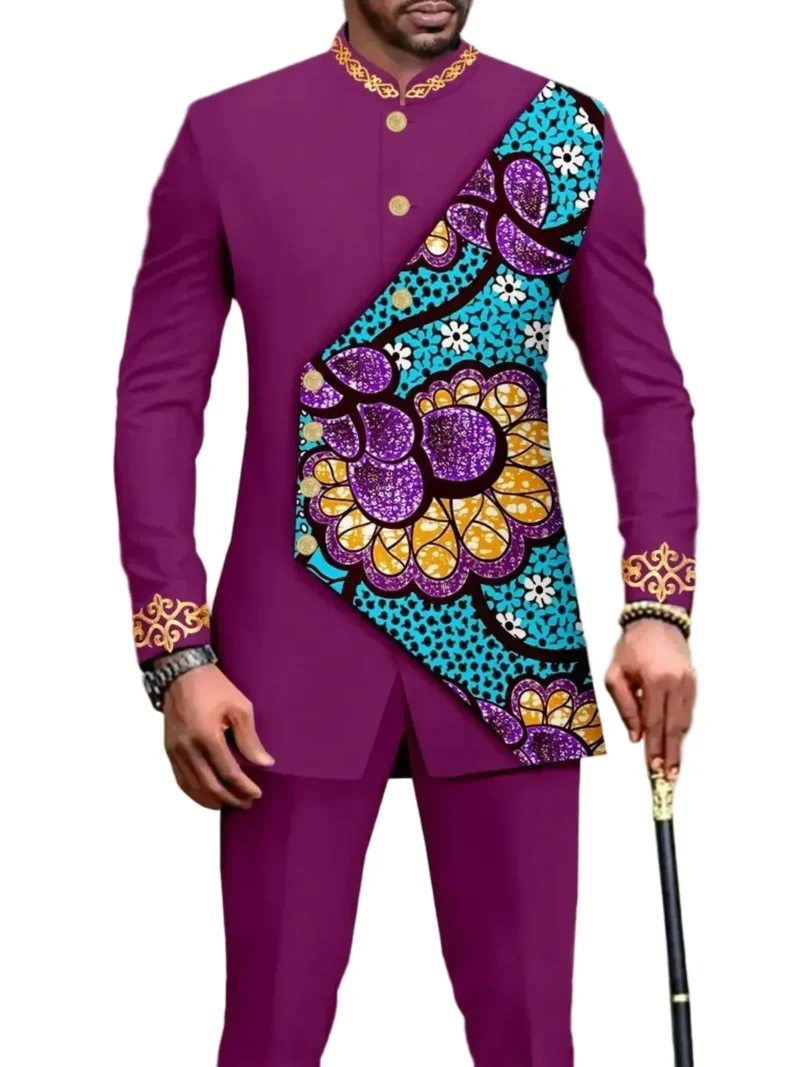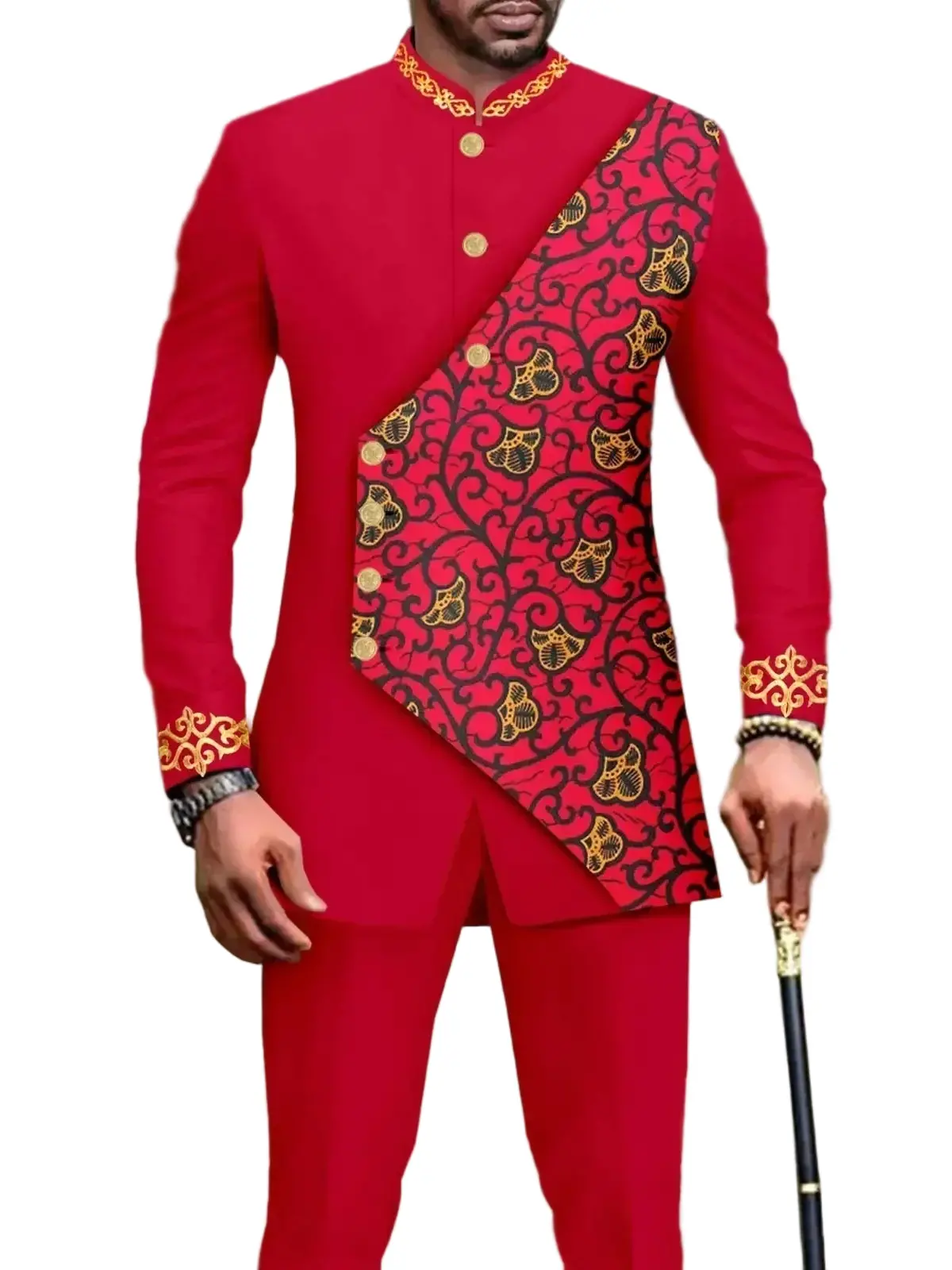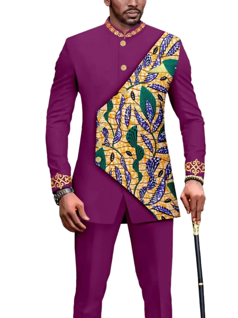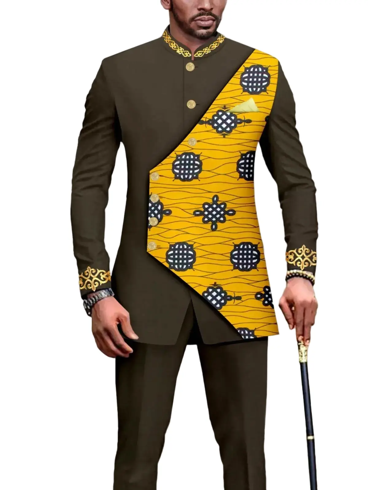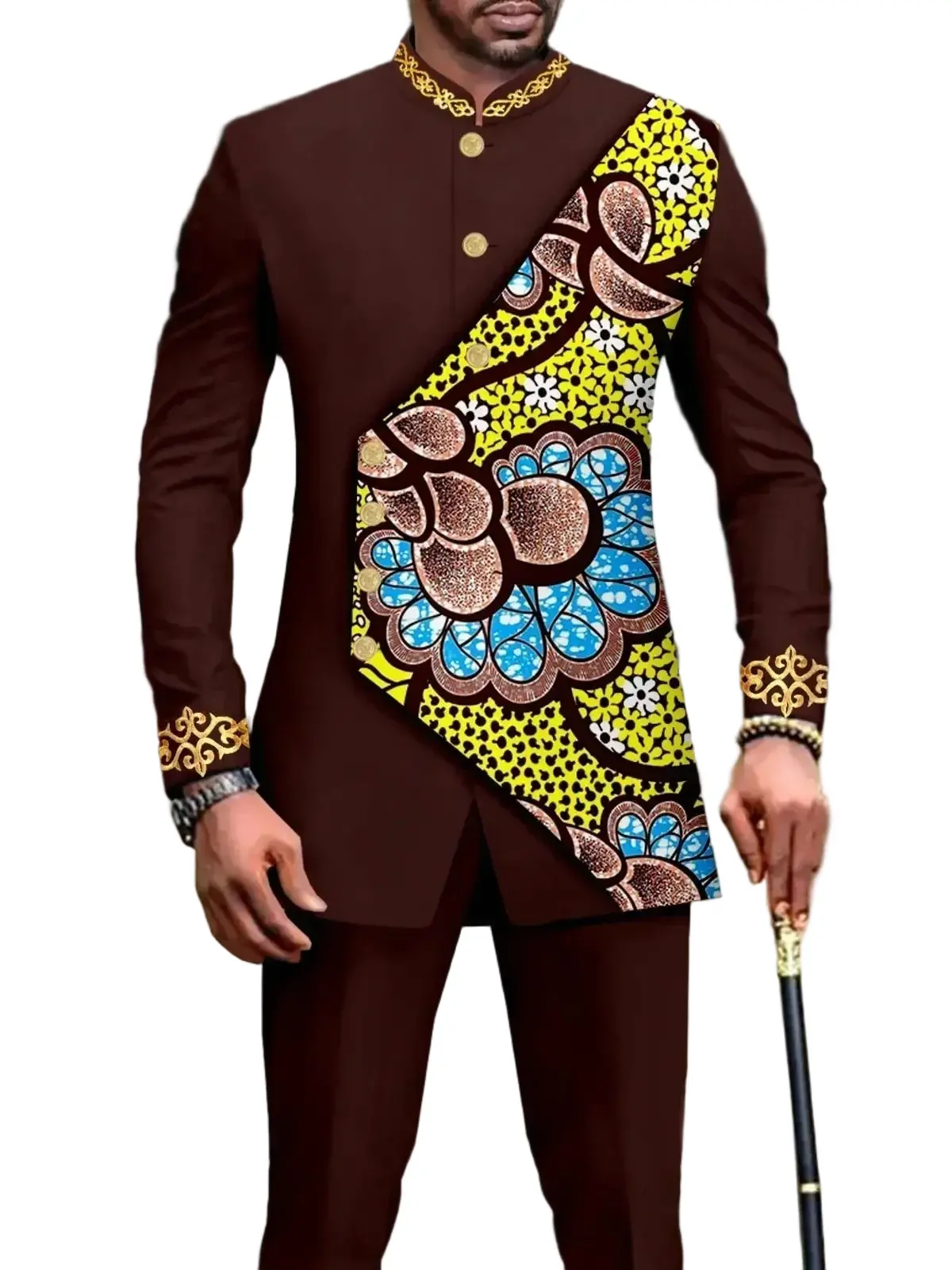 African Clothing For Men Embroidery Full Sleeve Double Breasted Set Acmt68-1African Clothing For Men Embroidery Full Sleeve Double Breasted Set Acmt68-1
