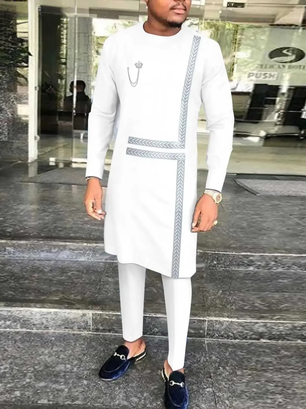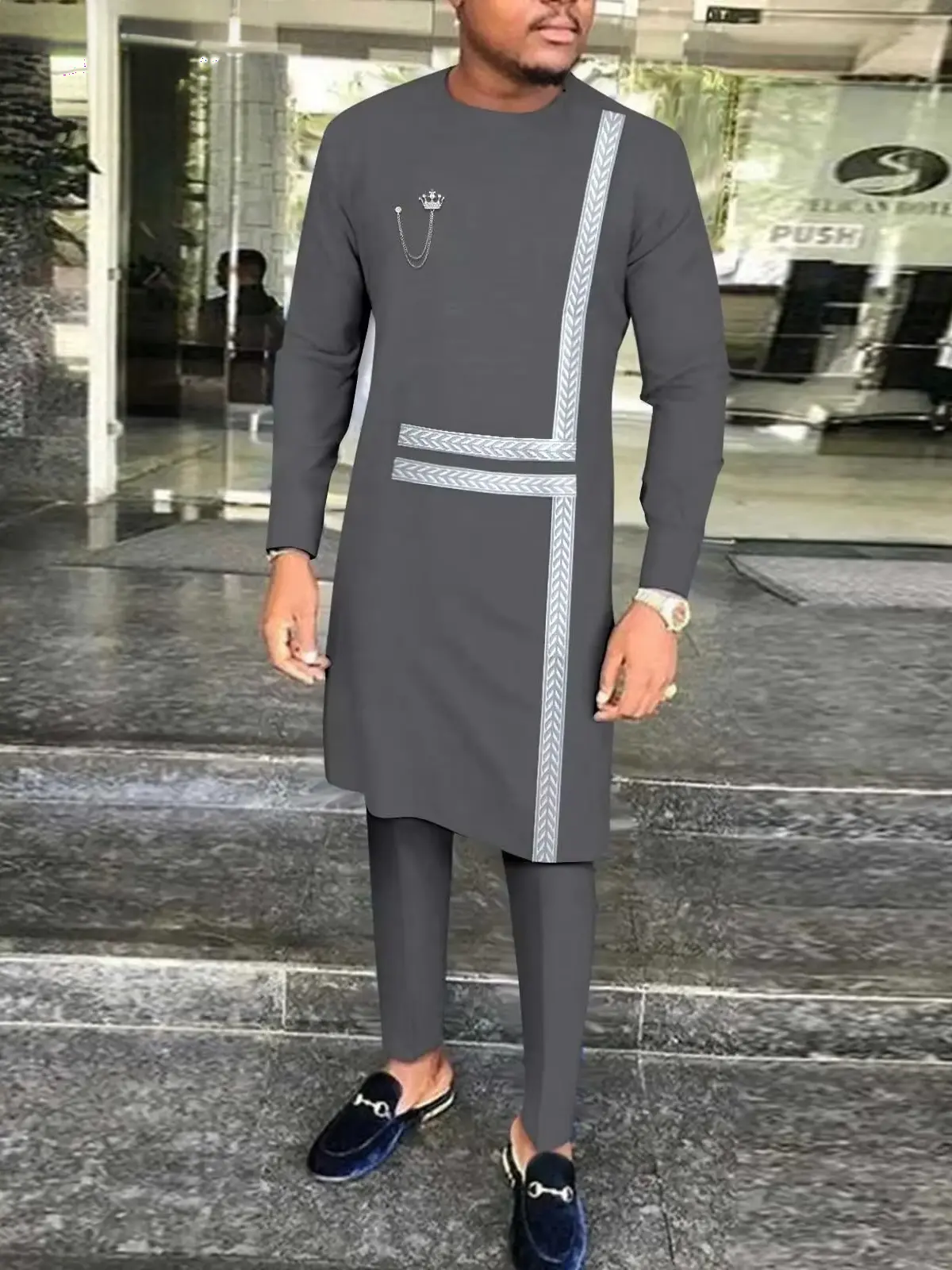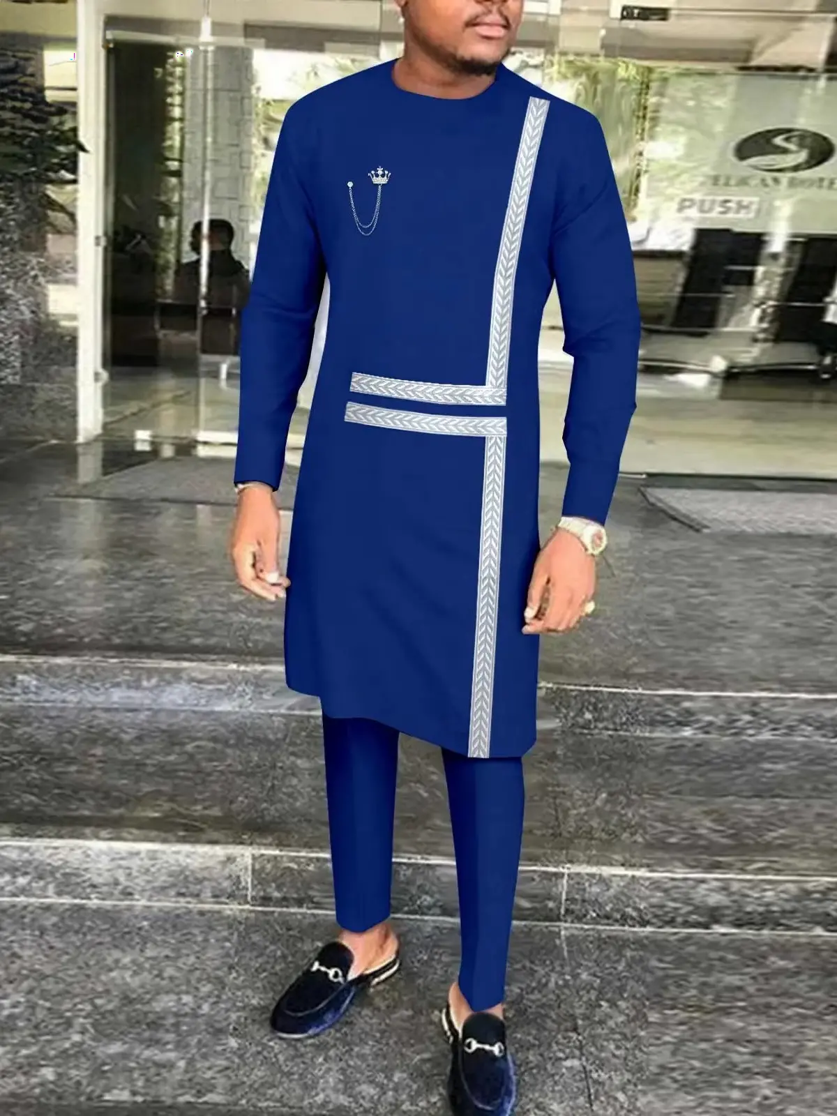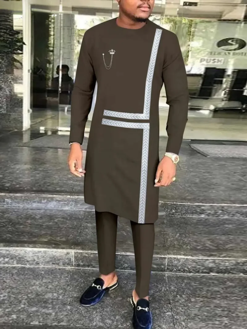 African Clothing For Men Embroidery Shirts and Pants 2 Piece Set Acmt41