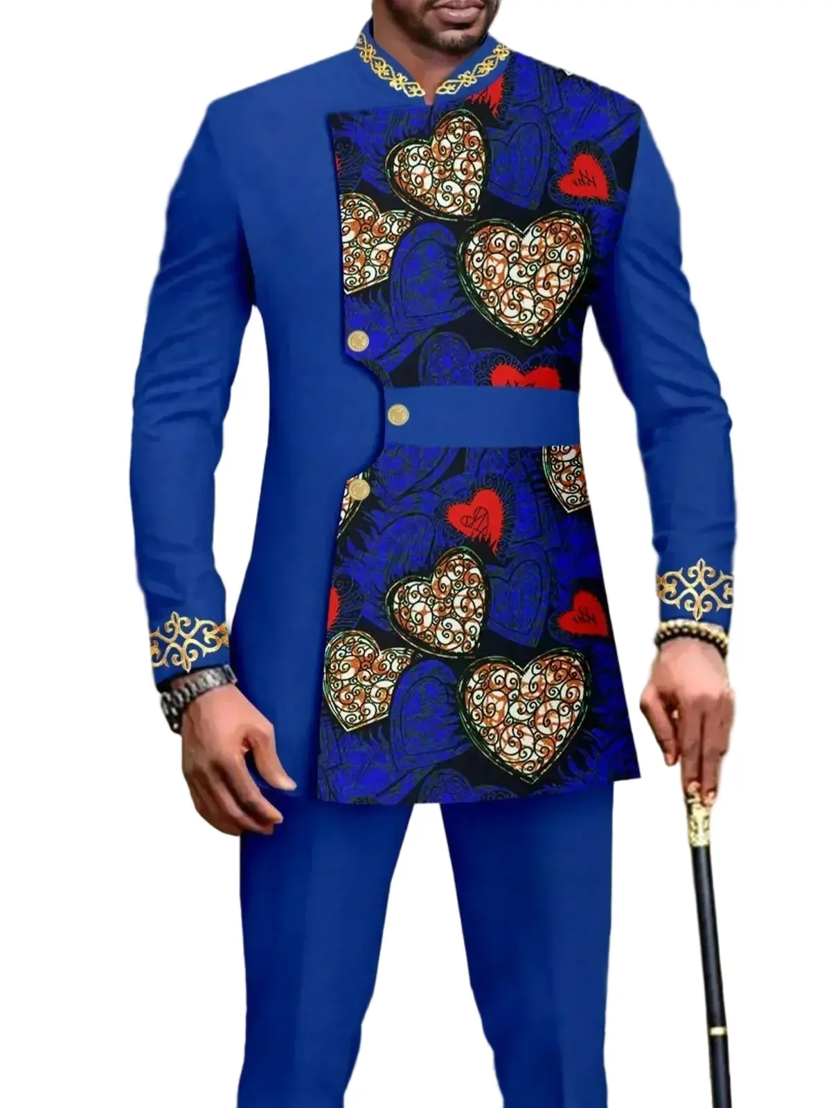 African Clothing For Men Full Sleeve Single Breasted Blazer and Pant Set Acmt69-1