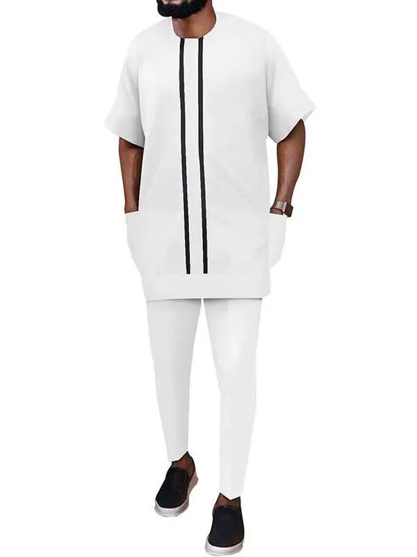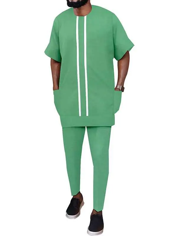 African Clothing For Men Plus Size Shorts Sleeve Tops and Pants Sets Acmt47