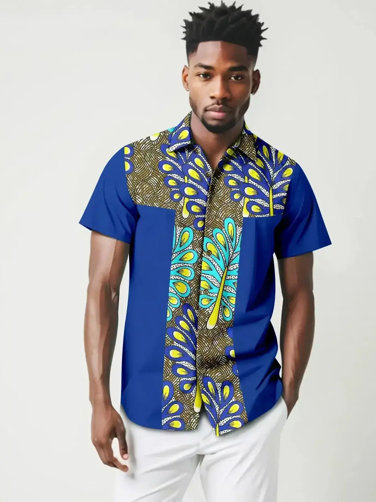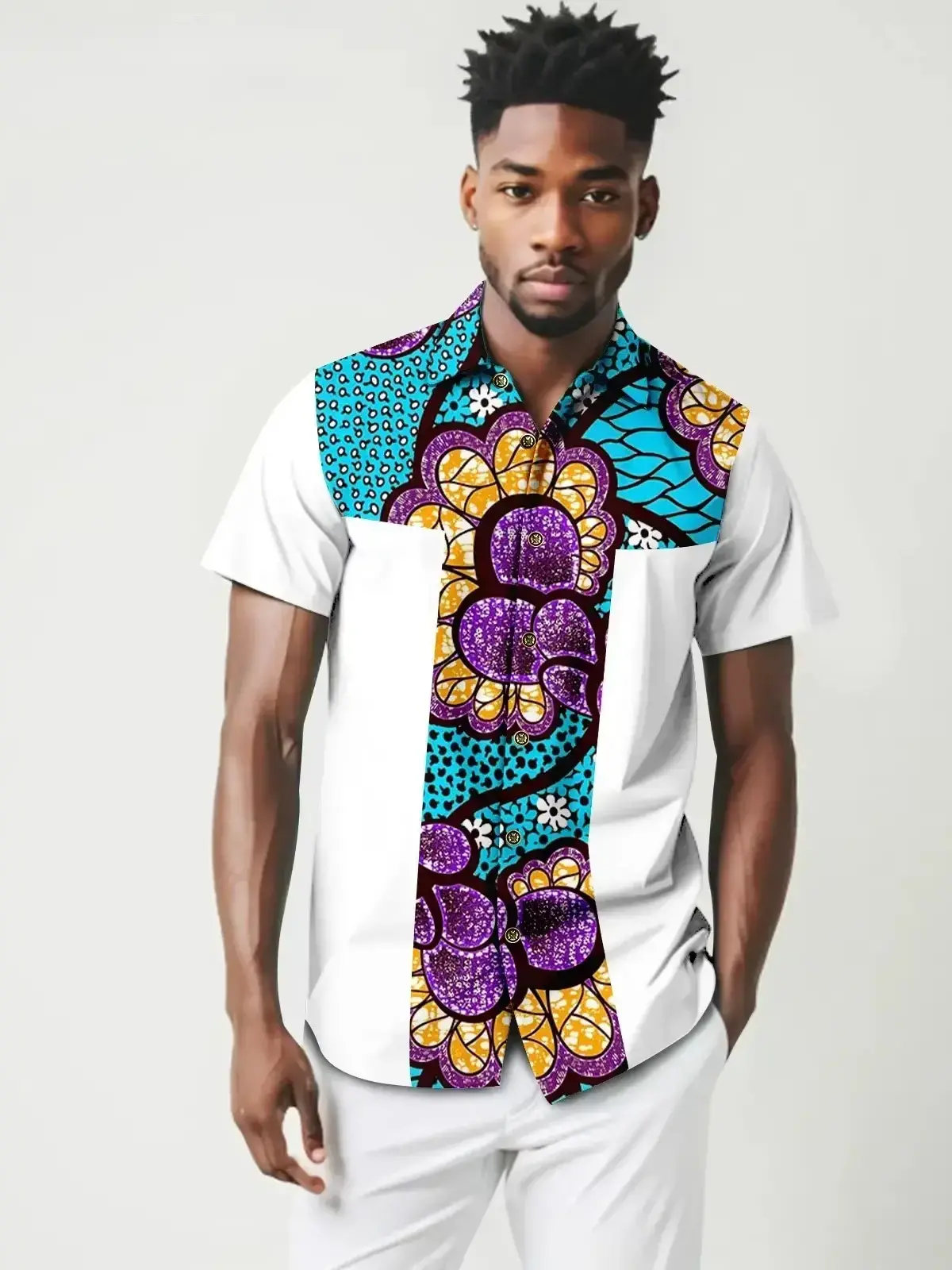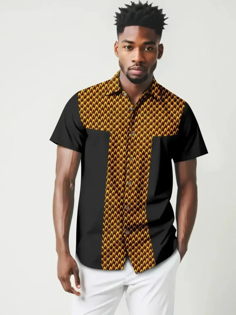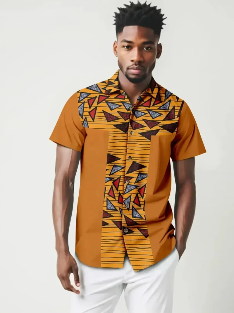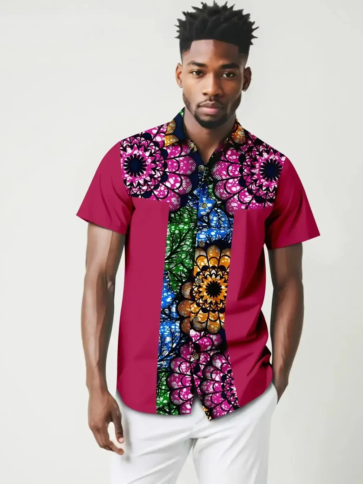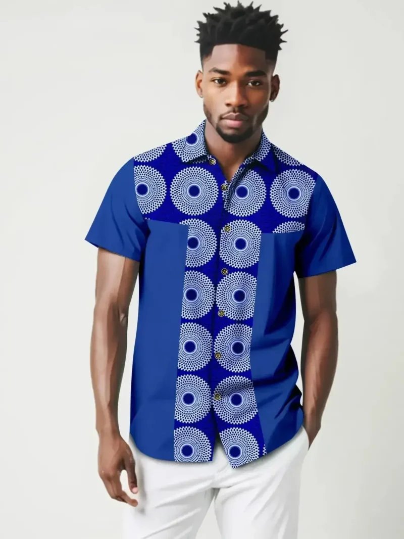 African Clothing For Men Short Sleeve Single Breasted Wear Acmt54