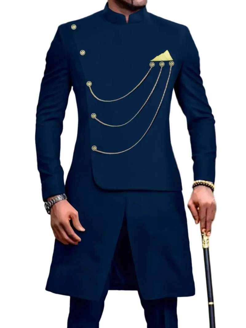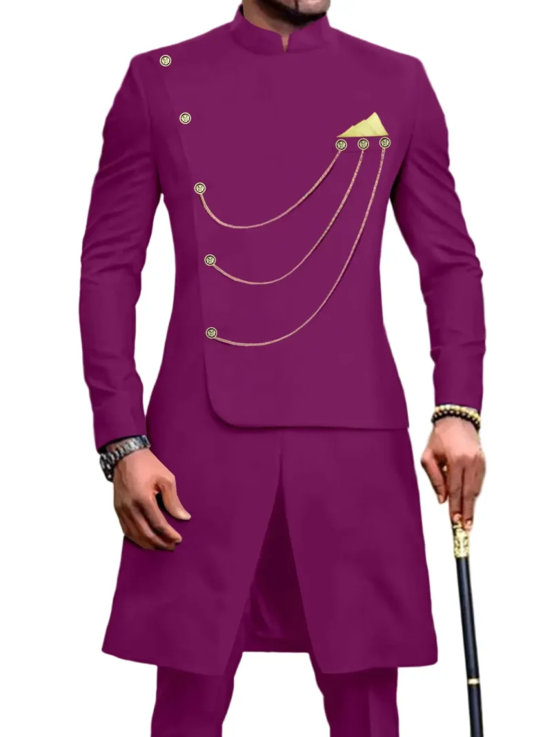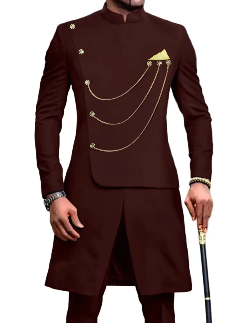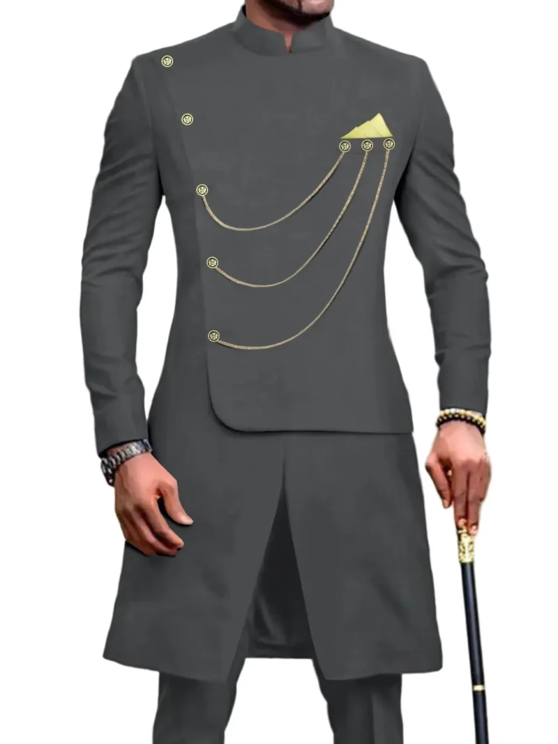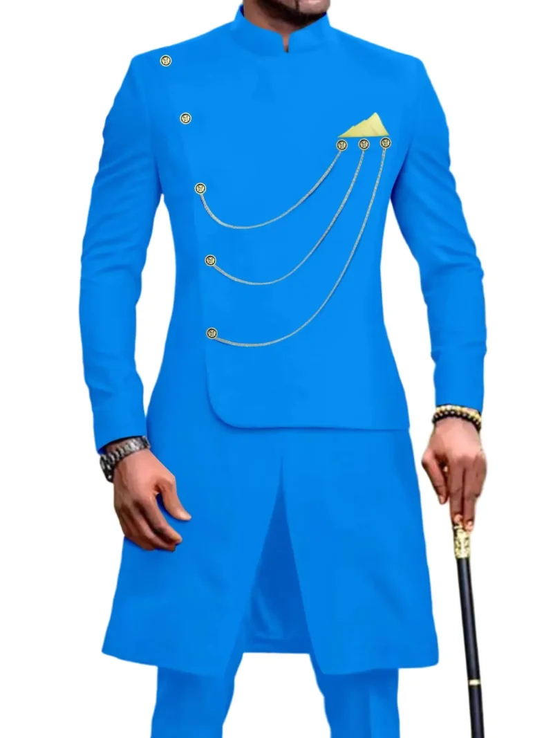 African Clothing For Men Single Breasted Chain Jackets and Pants Set Acmt57African Clothing For Men Single Breasted Chain Jackets and Pants Set Acmt57