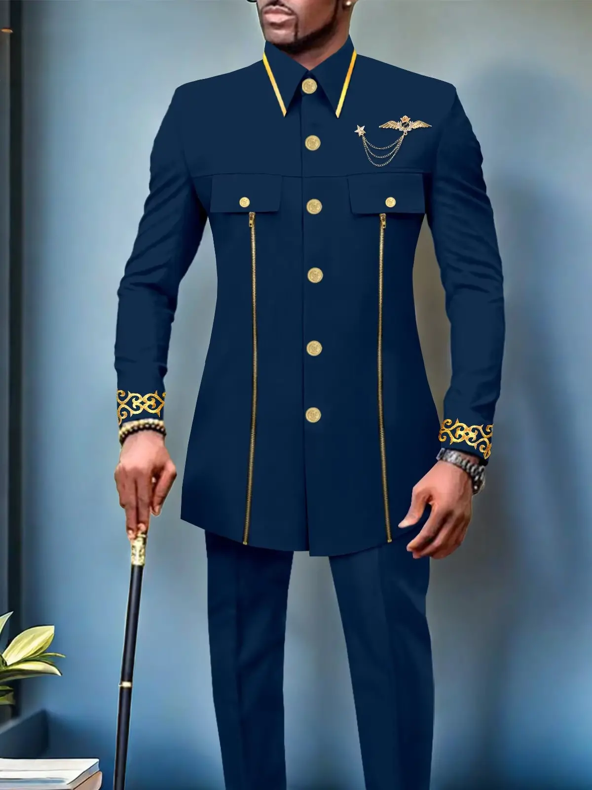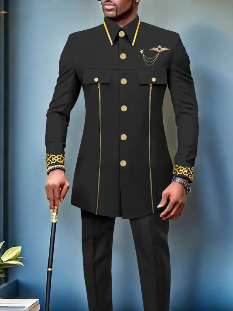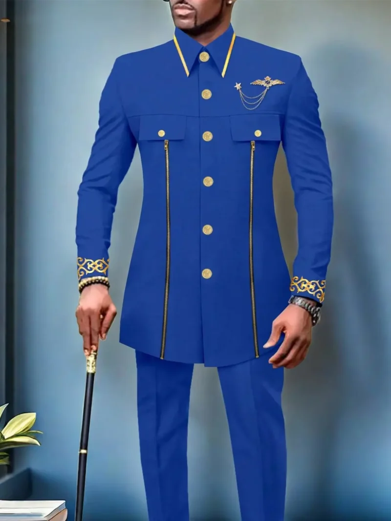 African Clothing For Men Single Breasted Full Sleeve Zip Blazer and Pants Acmt4