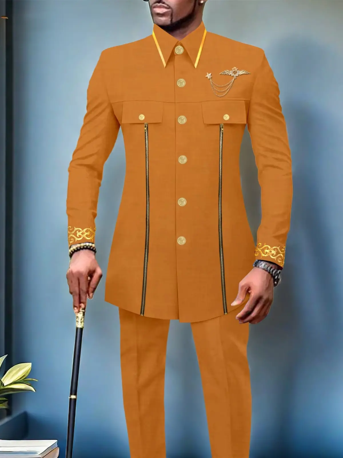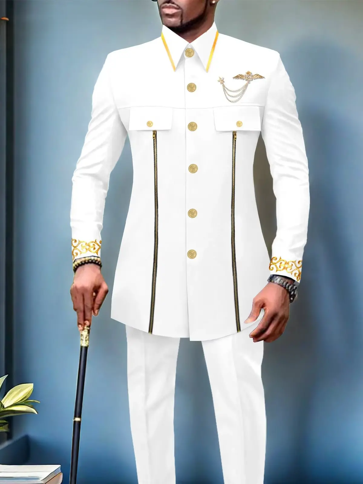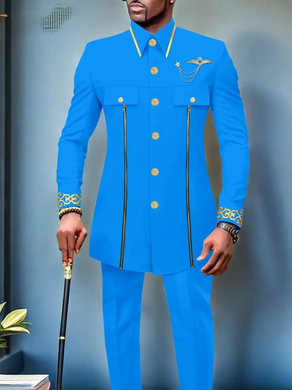 African Clothing For Men Single Breasted Full Sleeve Zip Blazer and Pants Acmt4