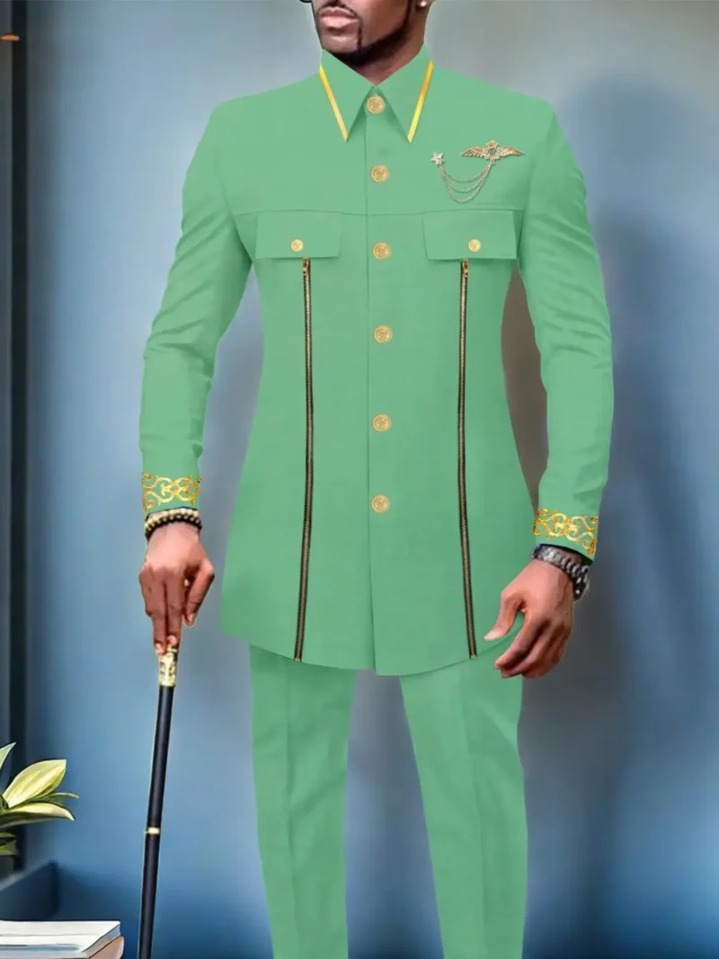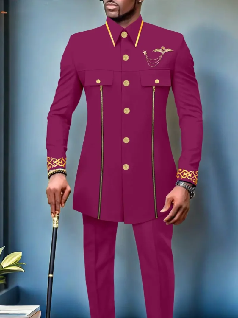 African Clothing For Men Single Breasted Full Sleeve Zip Blazer and Pants Acmt4African Clothing For Men Single Breasted Full Sleeve Zip Blazer and Pants Acmt4