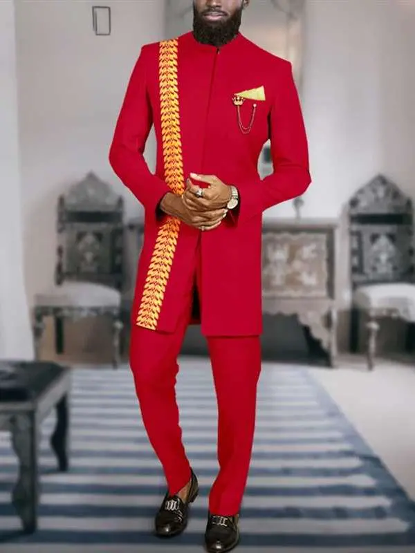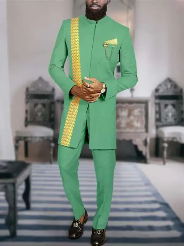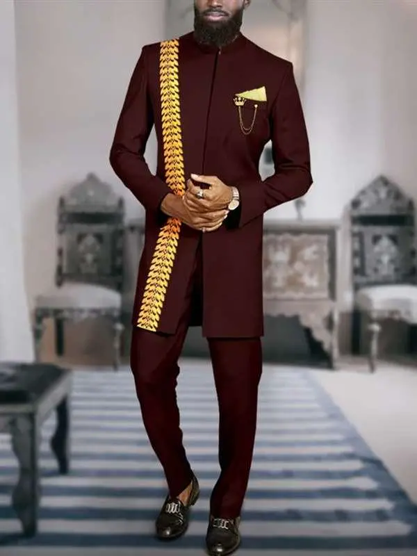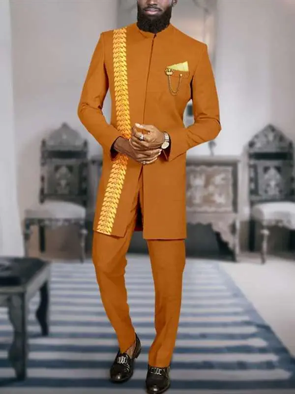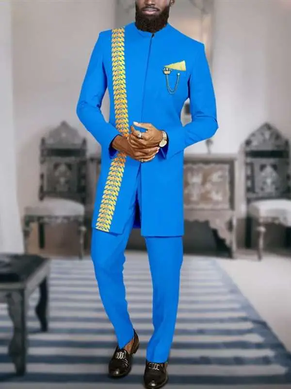 African Clothing For Men Slim Fit Embroidery Blazer and Pants Set Acmt30African Clothing For Men Slim Fit Embroidery Blazer and Pants Set Acmt30