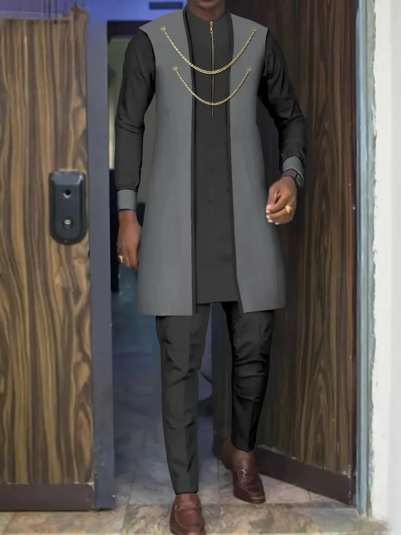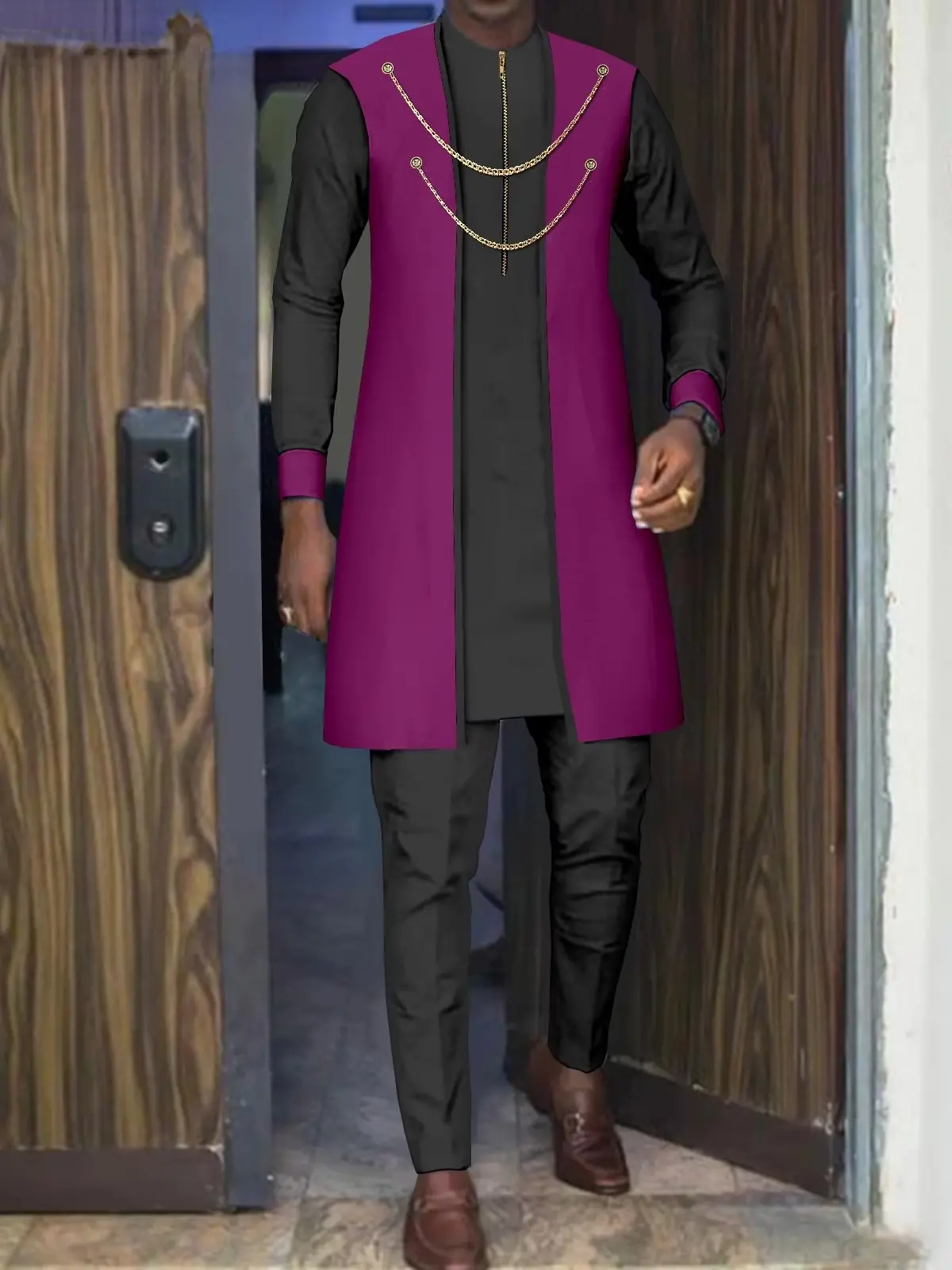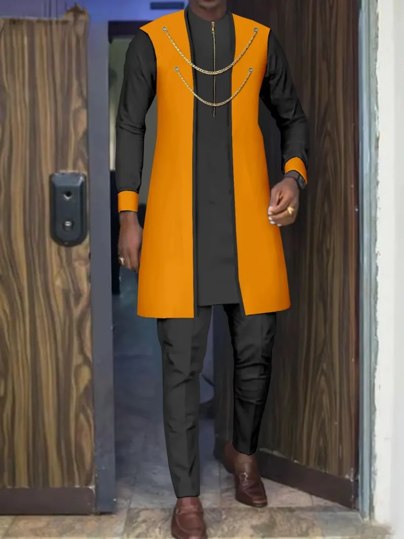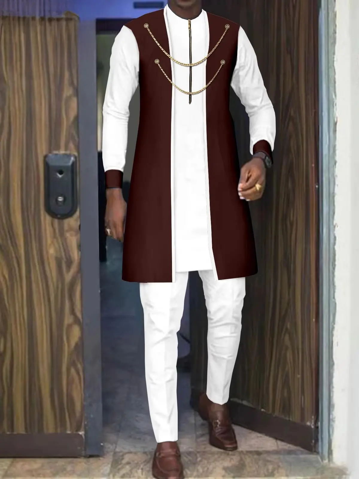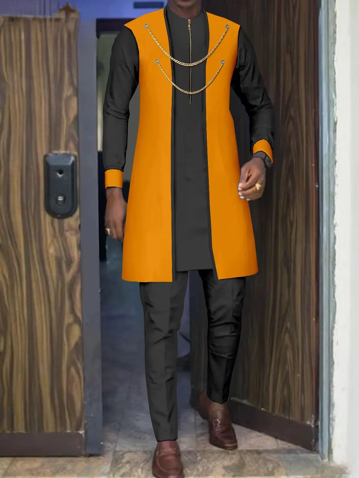 African Clothing For Men Zip Jacket Shirts and Ankara Pants Set Acmt34-1