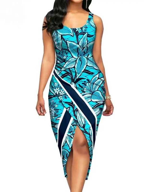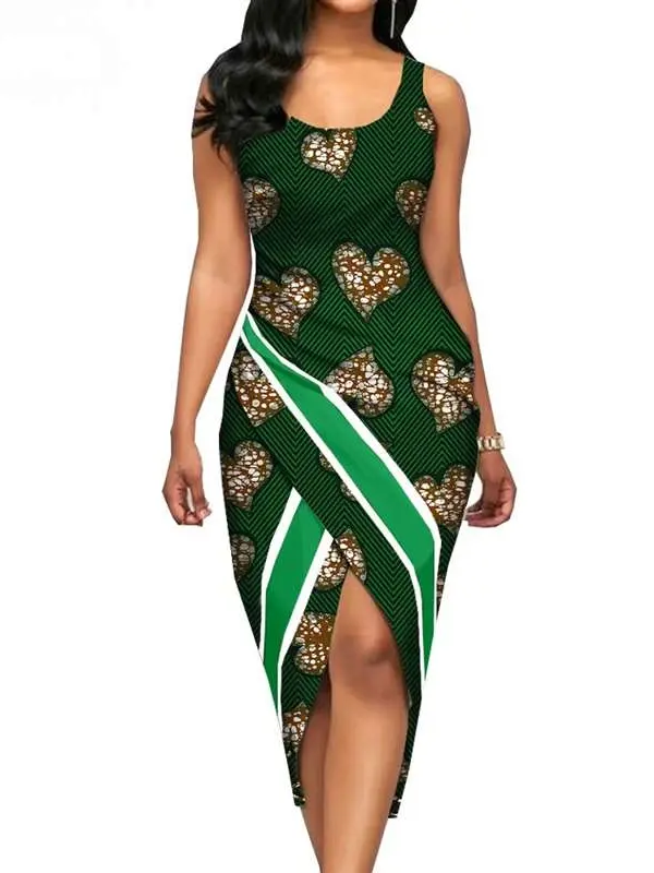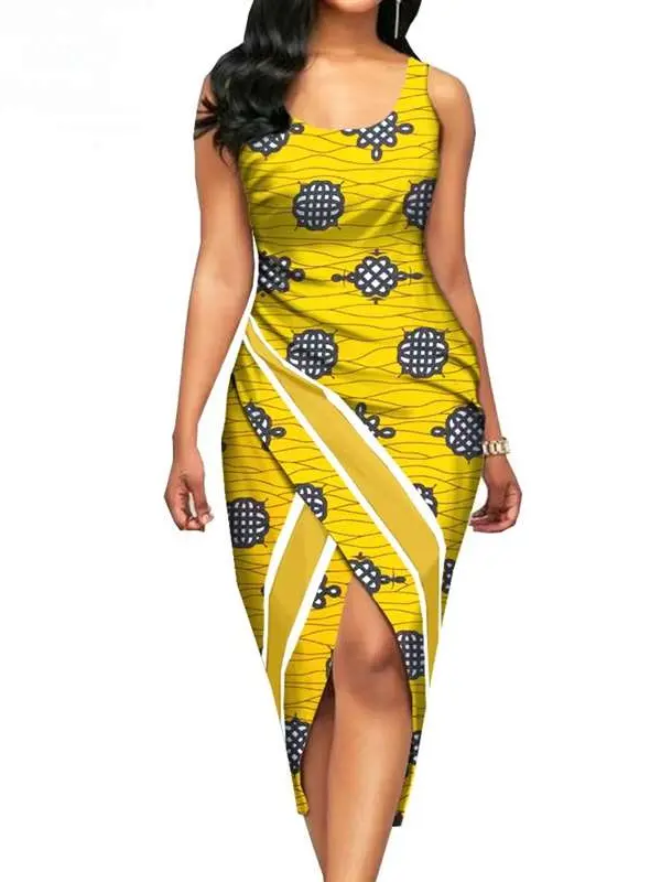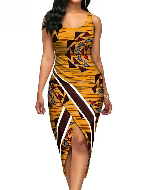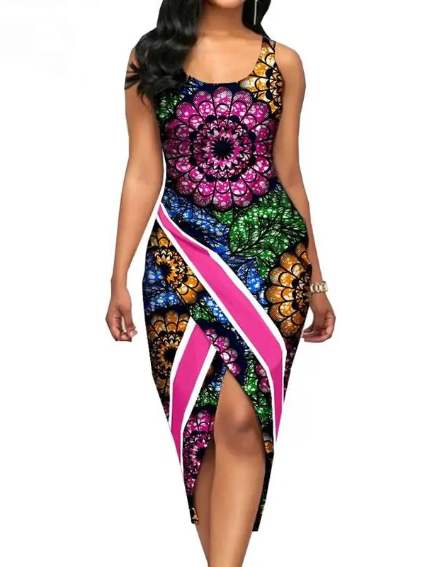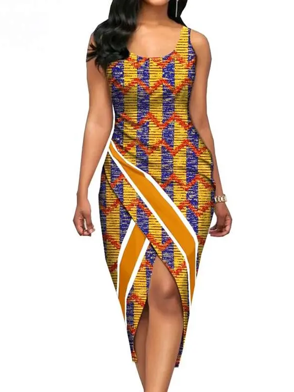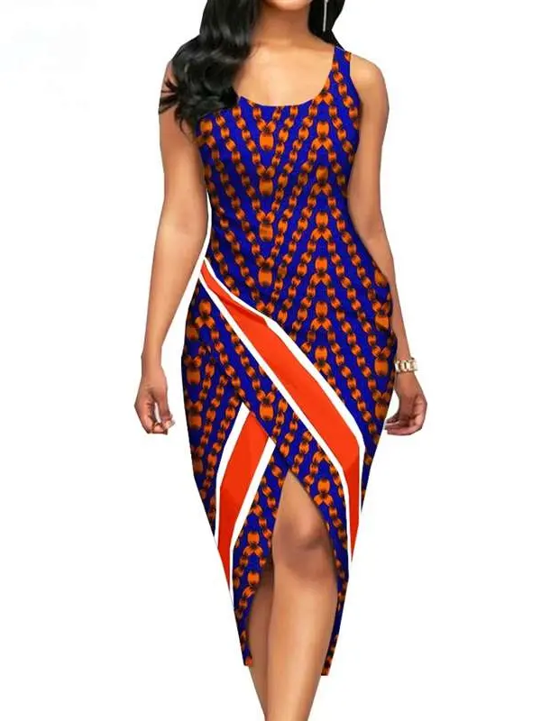 African Clothing for Women Print Sleeveless O-neck Mid-calf Length Dresses Wdr33