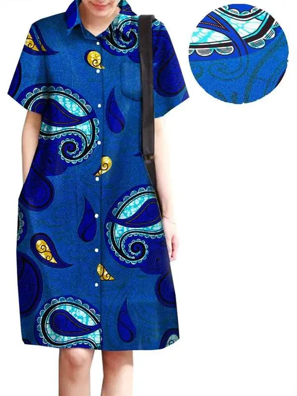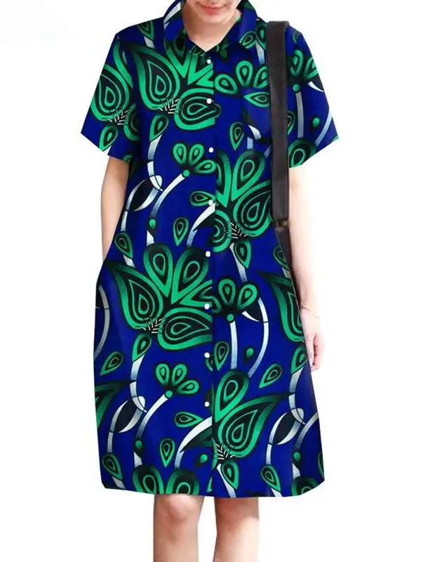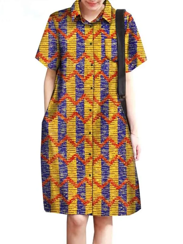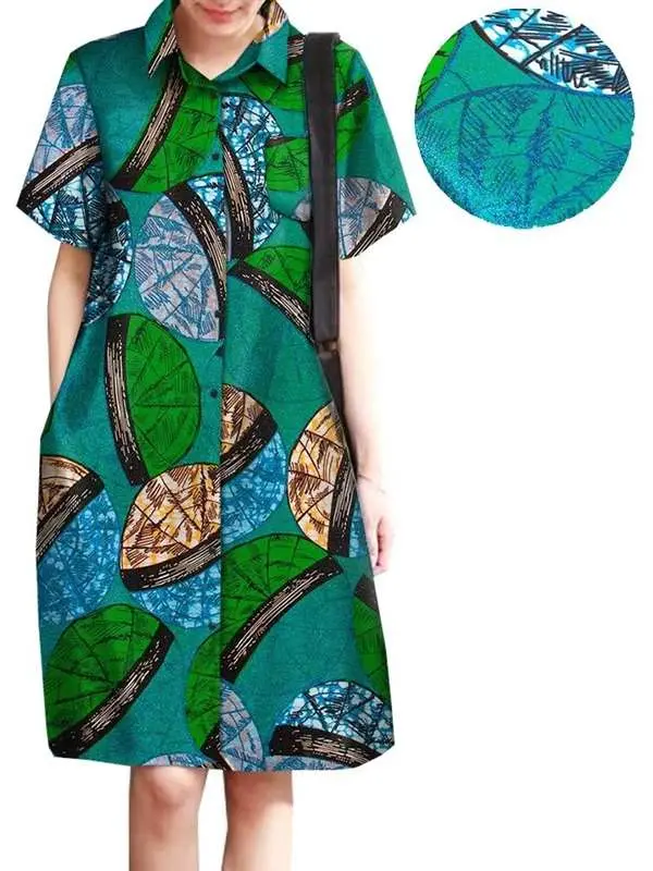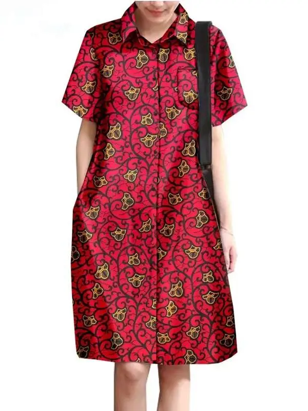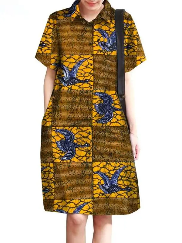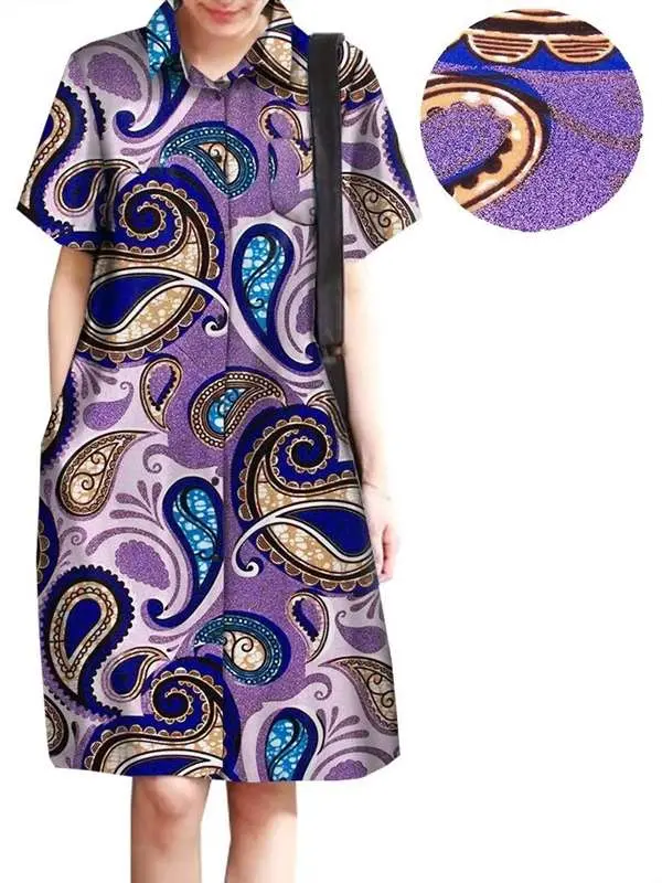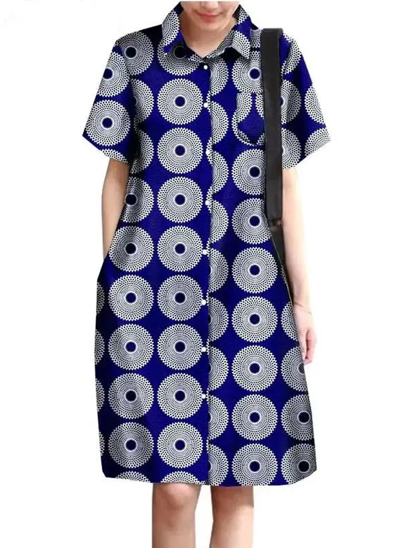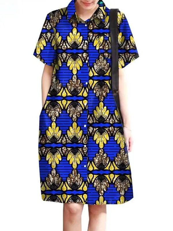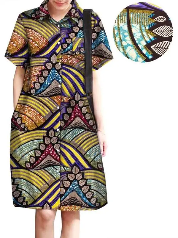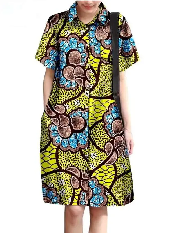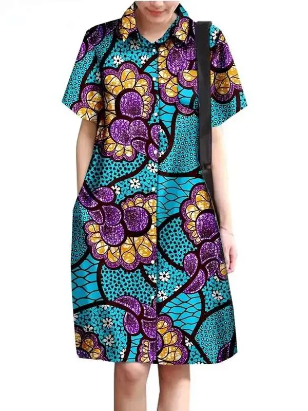 African Clothing for Women Wax Batik Plus Size Short Sleeve Print Dresses Wdr31