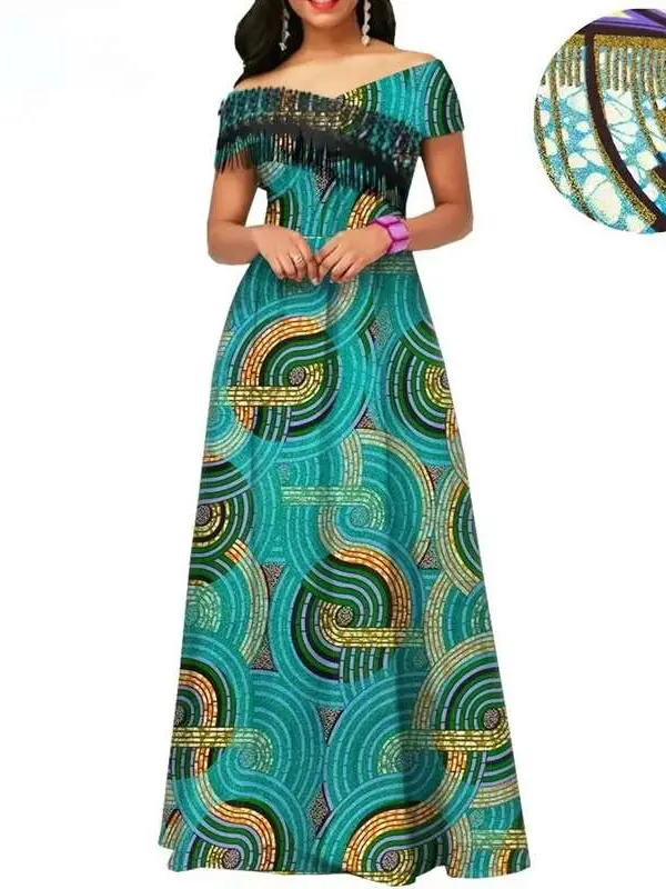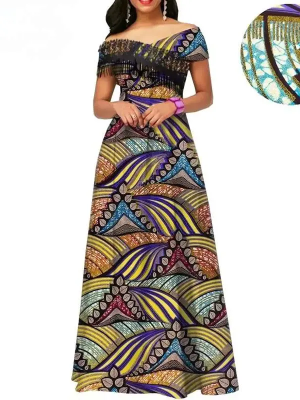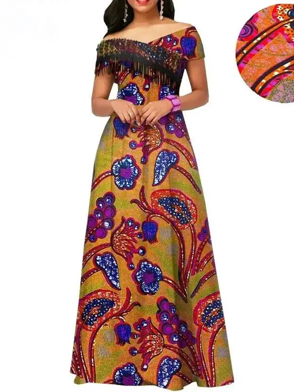- 【DESIGN FEATURES】:Classic fashion african women’s dresses,ankara print ankle party dress, patchwork design on neckline,long sleeve flared cuffs,high waisted slim fit,fashionable and sexy ,suitable for various occasions