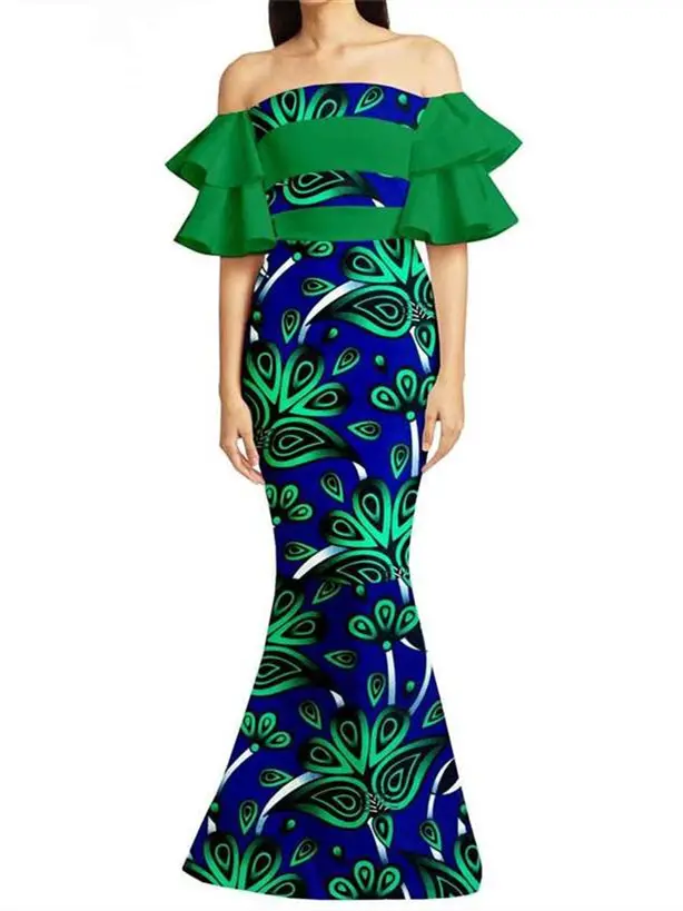 - 【DESIGN FEATURES】:Classic fashion african women’s dresses,ankara print ankle party dress, patchwork design on neckline,long sleeve flared cuffs,high waisted slim fit,fashionable and sexy ,suitable for various occasions