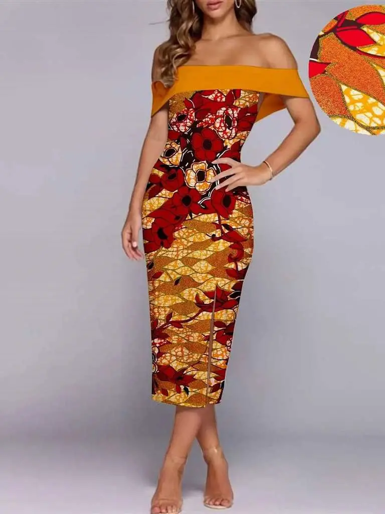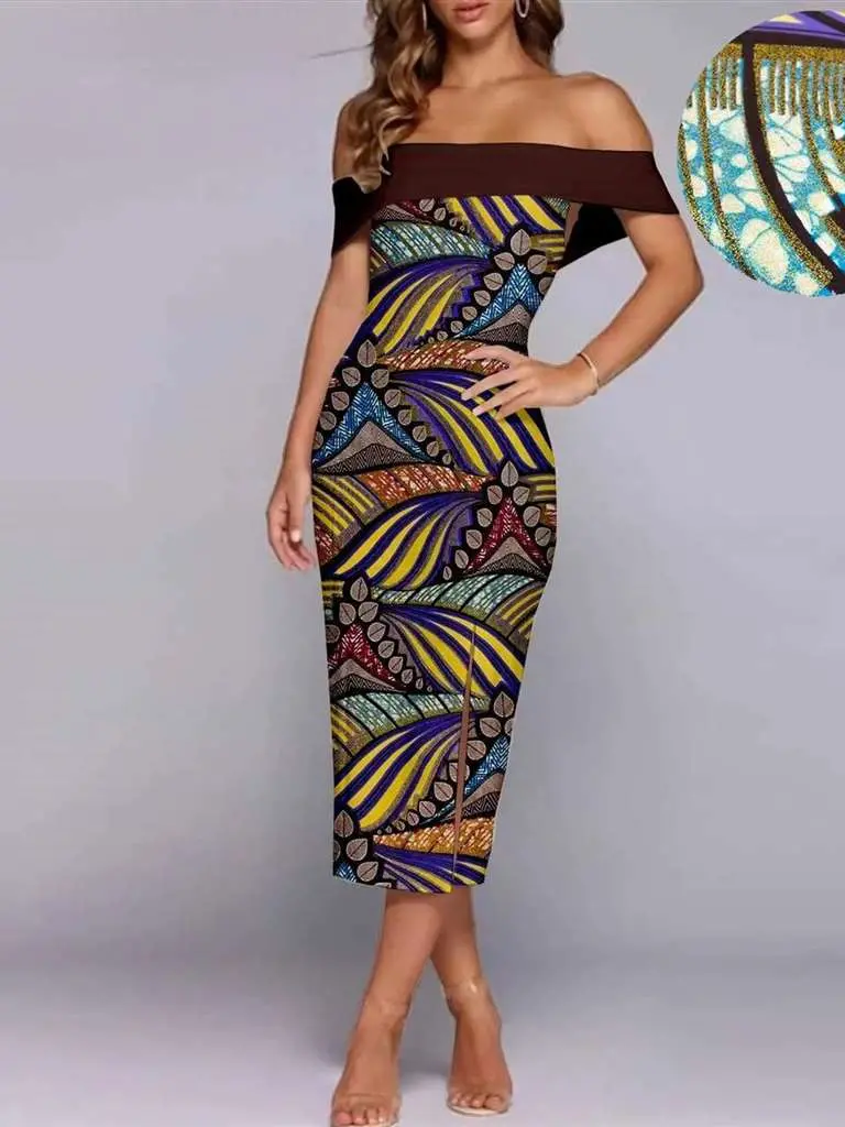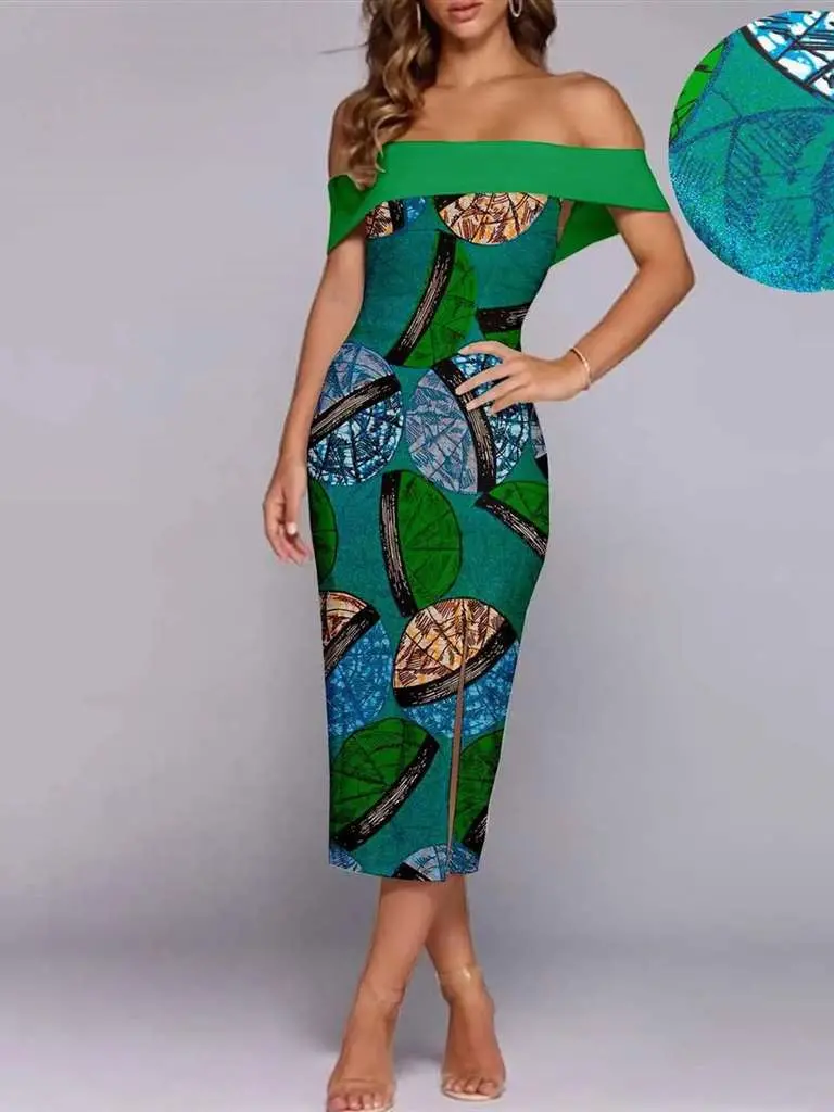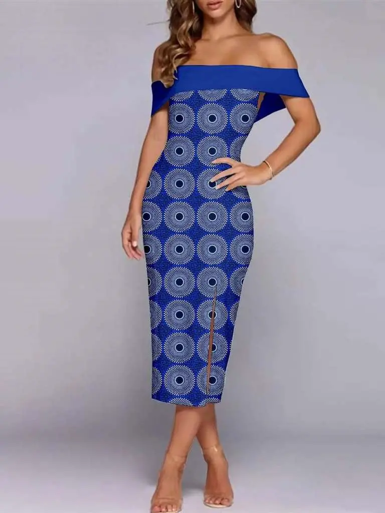 African Clothing for Women Bodycon High Waist Off Shoulder Dresses Wdr61