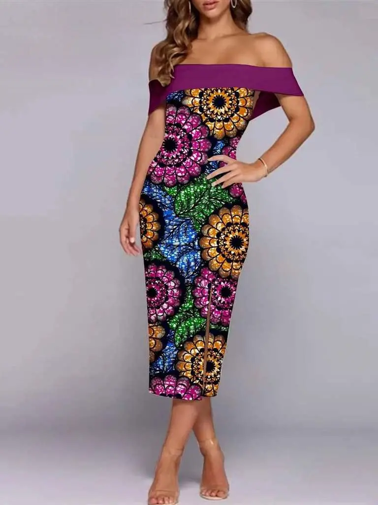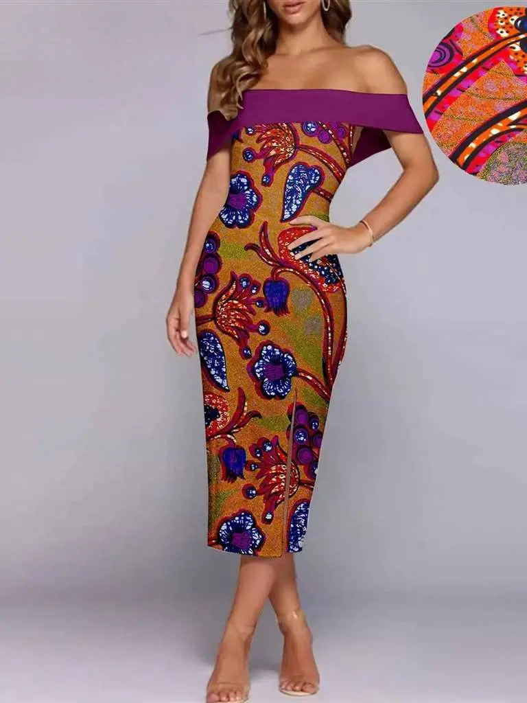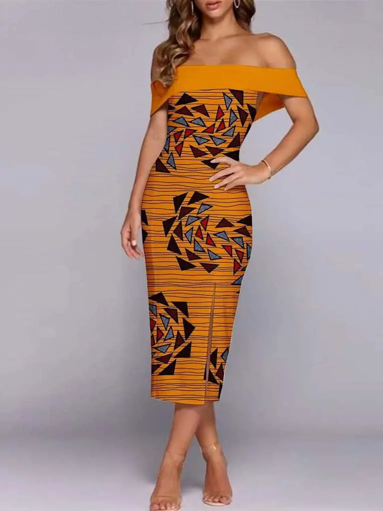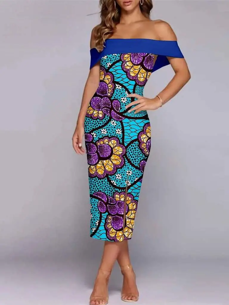 African Clothing for Women Bodycon High Waist Off Shoulder Dresses Wdr61