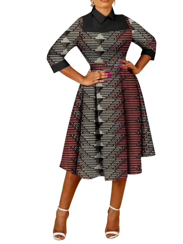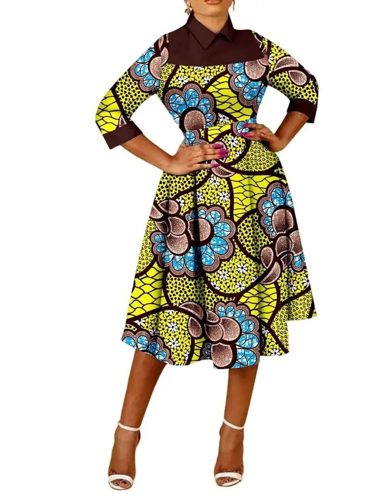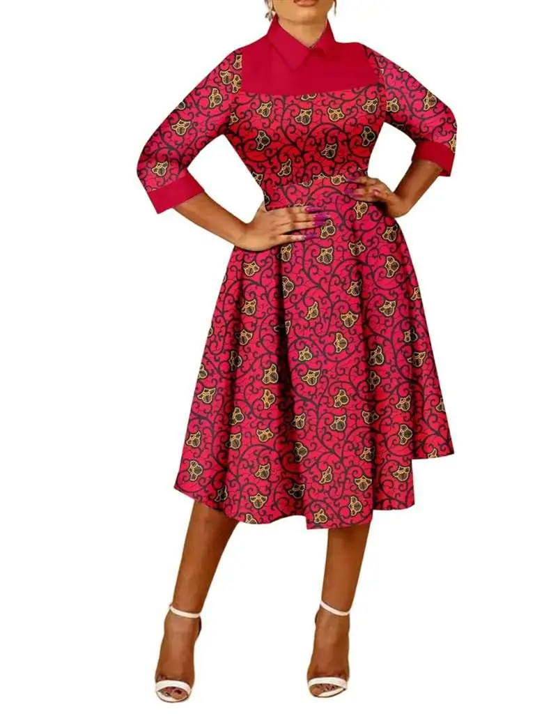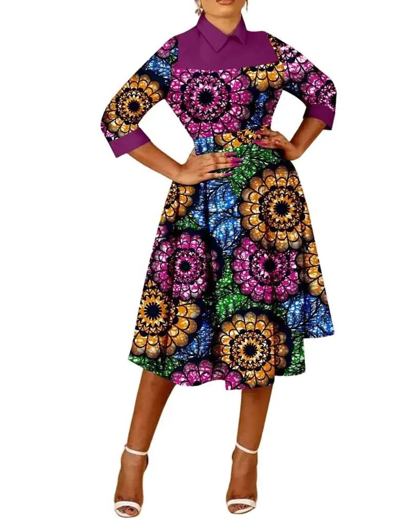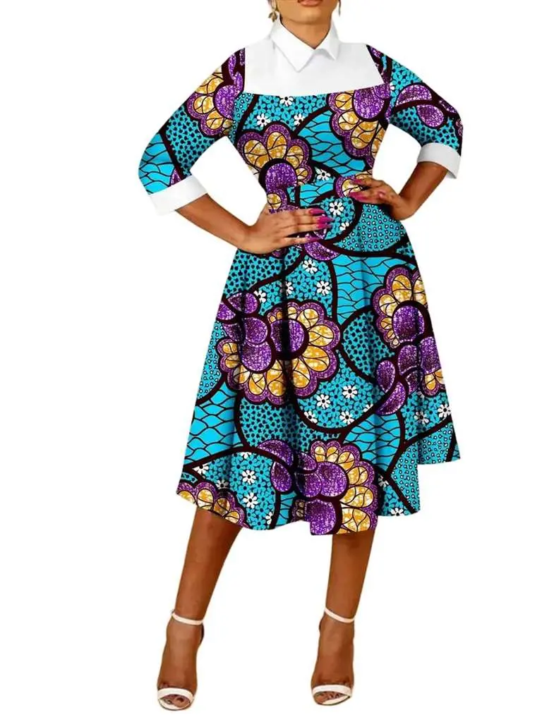 African Clothing for Women Dashiki Half Sleeve Fashion A Line Dresses Wdr88