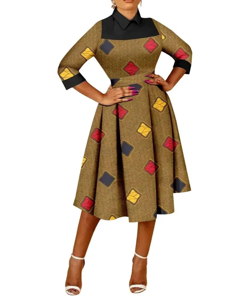Be the first to review “African Clothing for Women Dashiki Half Sleeve Fashion A Line Dresses Wdr88”