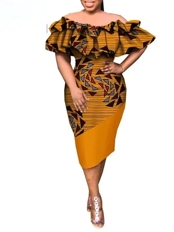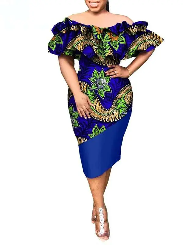 African Clothing for Women Ruffles Sleeve Slash Neck Knee-length Dresses Wdr30African Clothing for Women Ruffles Sleeve Slash Neck Knee-length Dresses Wdr30