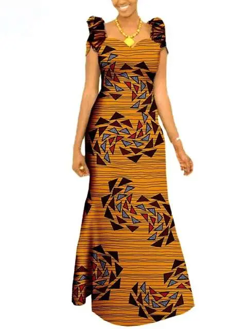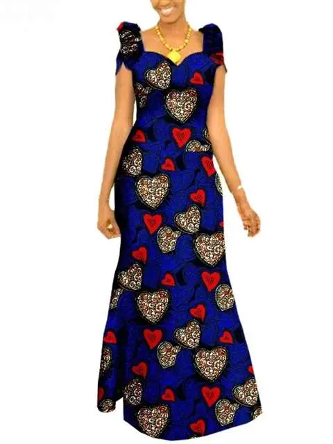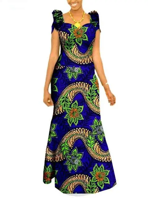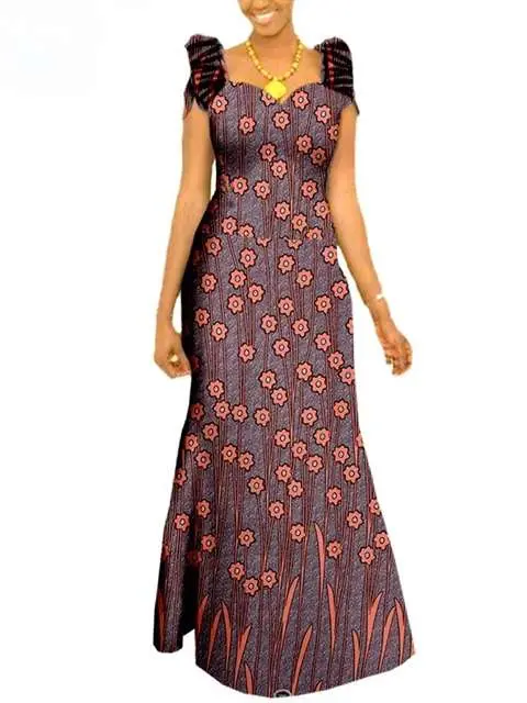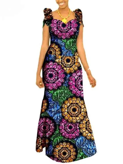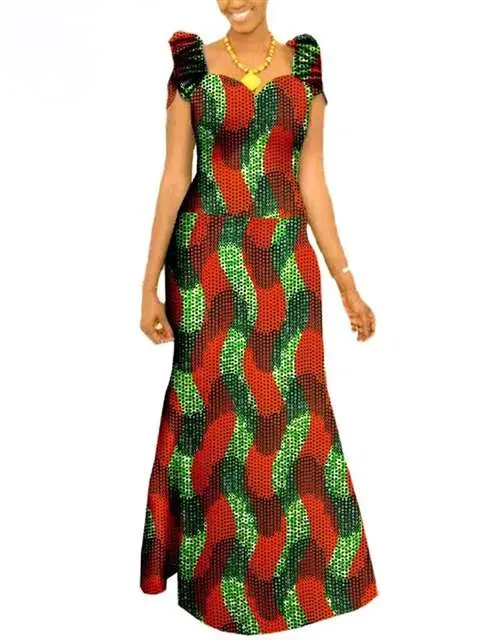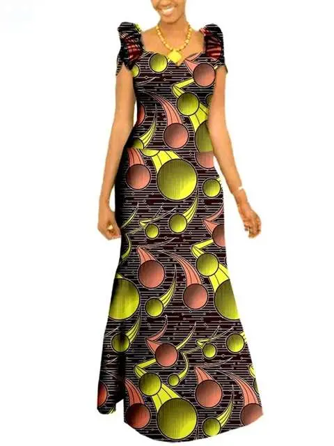 African Clothing for Women Short Sleeve Ankara Fabric Print Dress Plus Size Wdr22