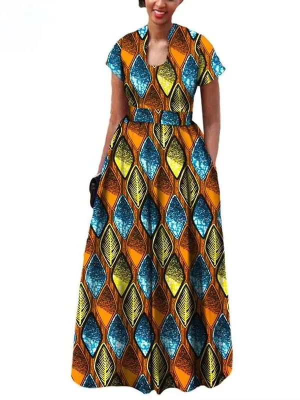 - 【DESIGN FEATURES】:Classic fashion african women’s dresses,ankara print ankle party dress, patchwork design on neckline,long sleeve flared cuffs,high waisted slim fit,fashionable and sexy ,suitable for various occasions